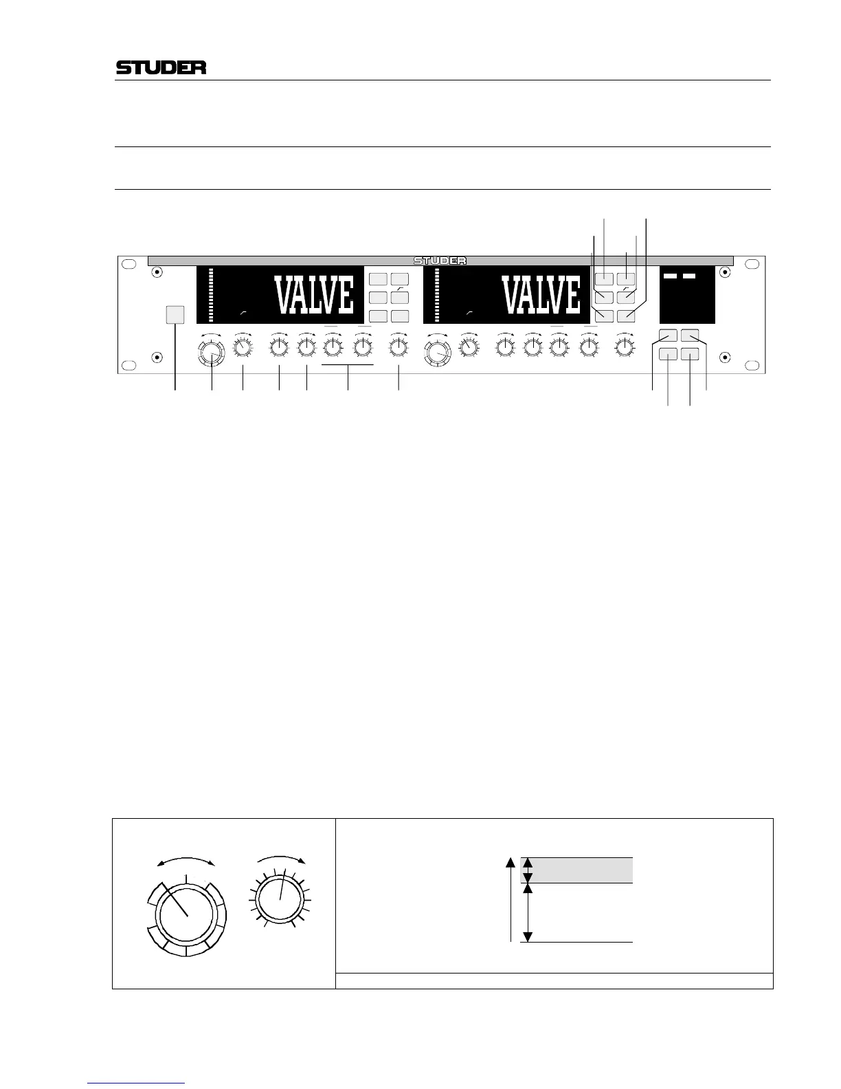 [2] Input dBu FS Rotary switch for coarse input sensitivity setting in 10 dB steps. OFF posi-