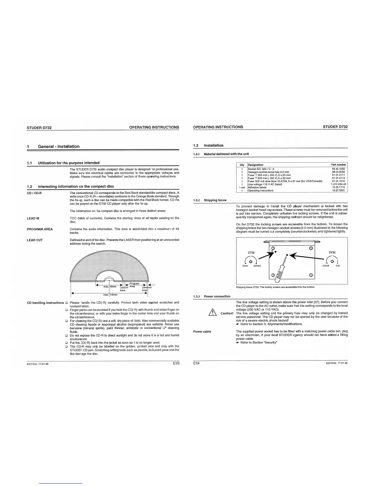 Studer D732 - General - Installation; Utilization; Installation; Power Connection