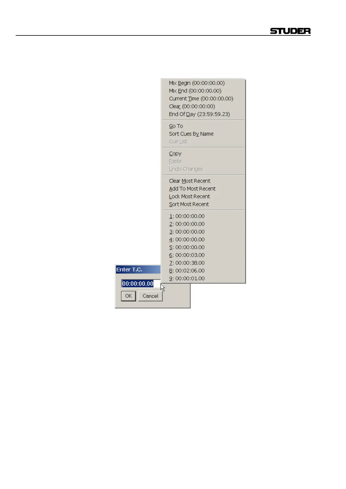 • Most Recent: A list of the most recently used timecode locations is