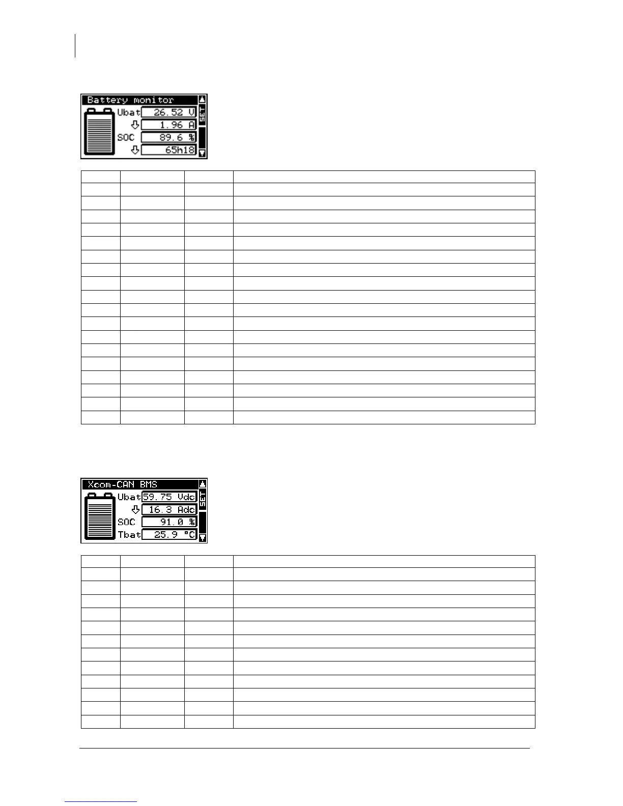 The user information below is only available when the Xcom-CAN is used in BMS mode (interface