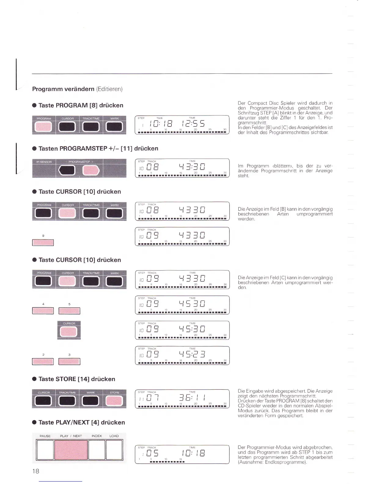 O Tasten PROGRAMSTEP