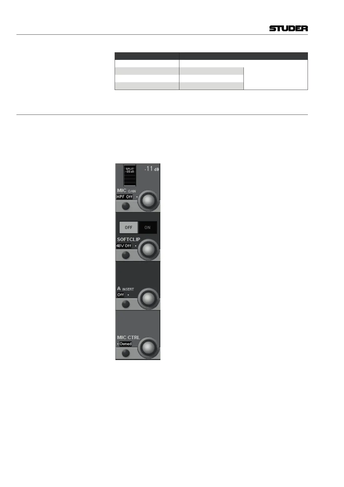 SOFT CLIP ON/OFF A soft clip function is available on all channels and can be activated individu-
