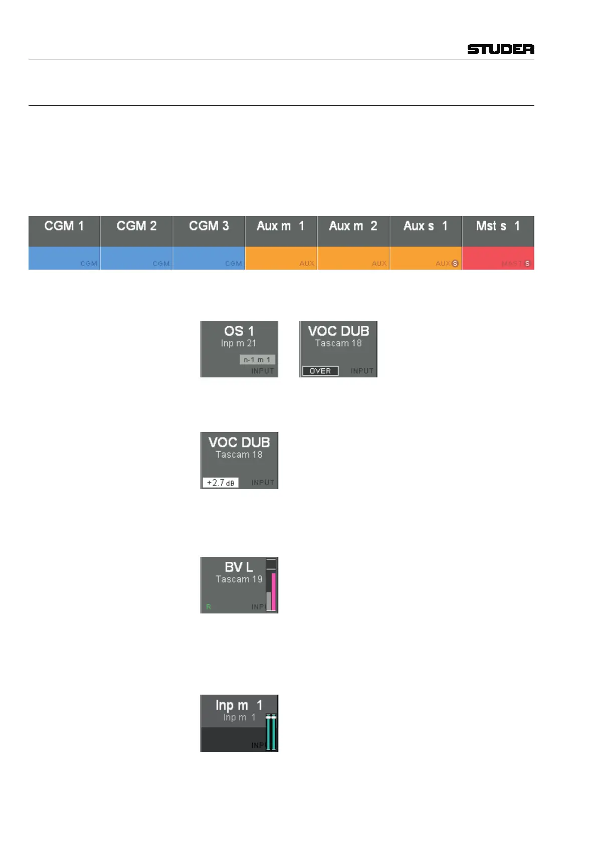 Generic Displays, such as n–1, OVER (fader over-range), etc. are only shown