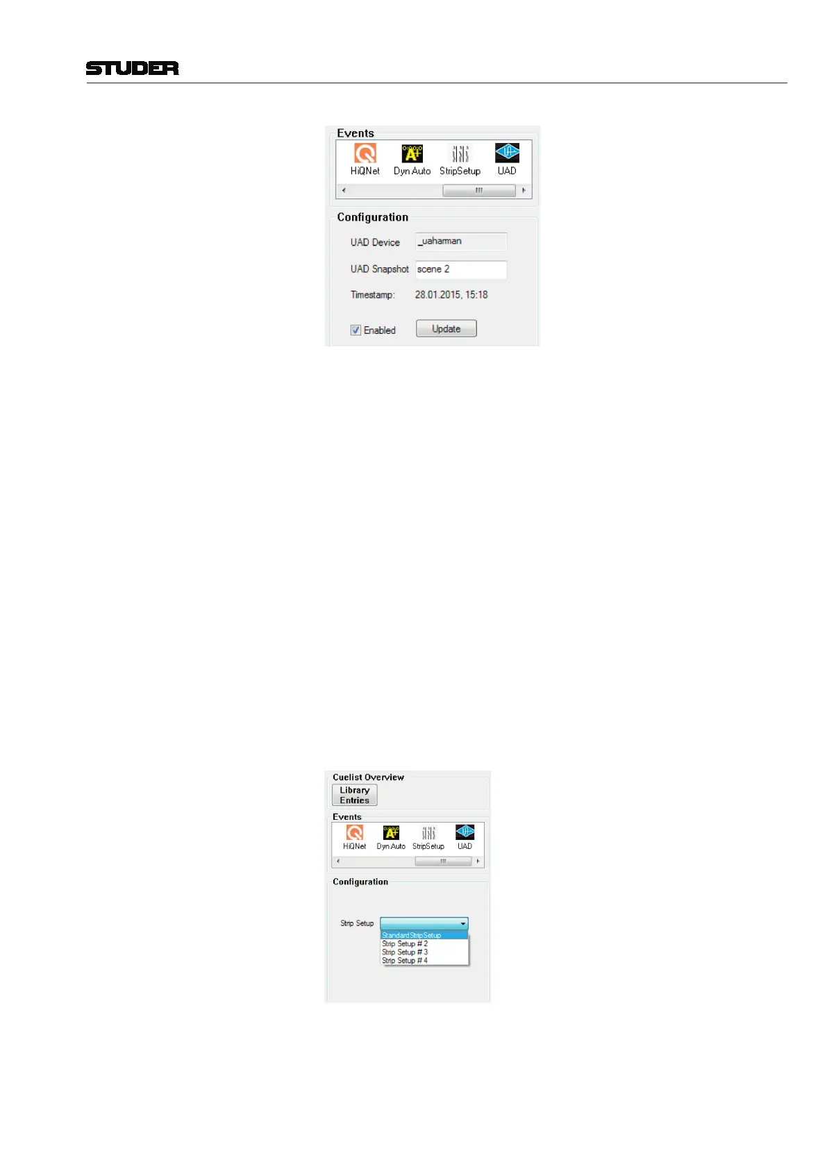 as StripSetup events. By firing the cue, the selected StripSetup gets loaded