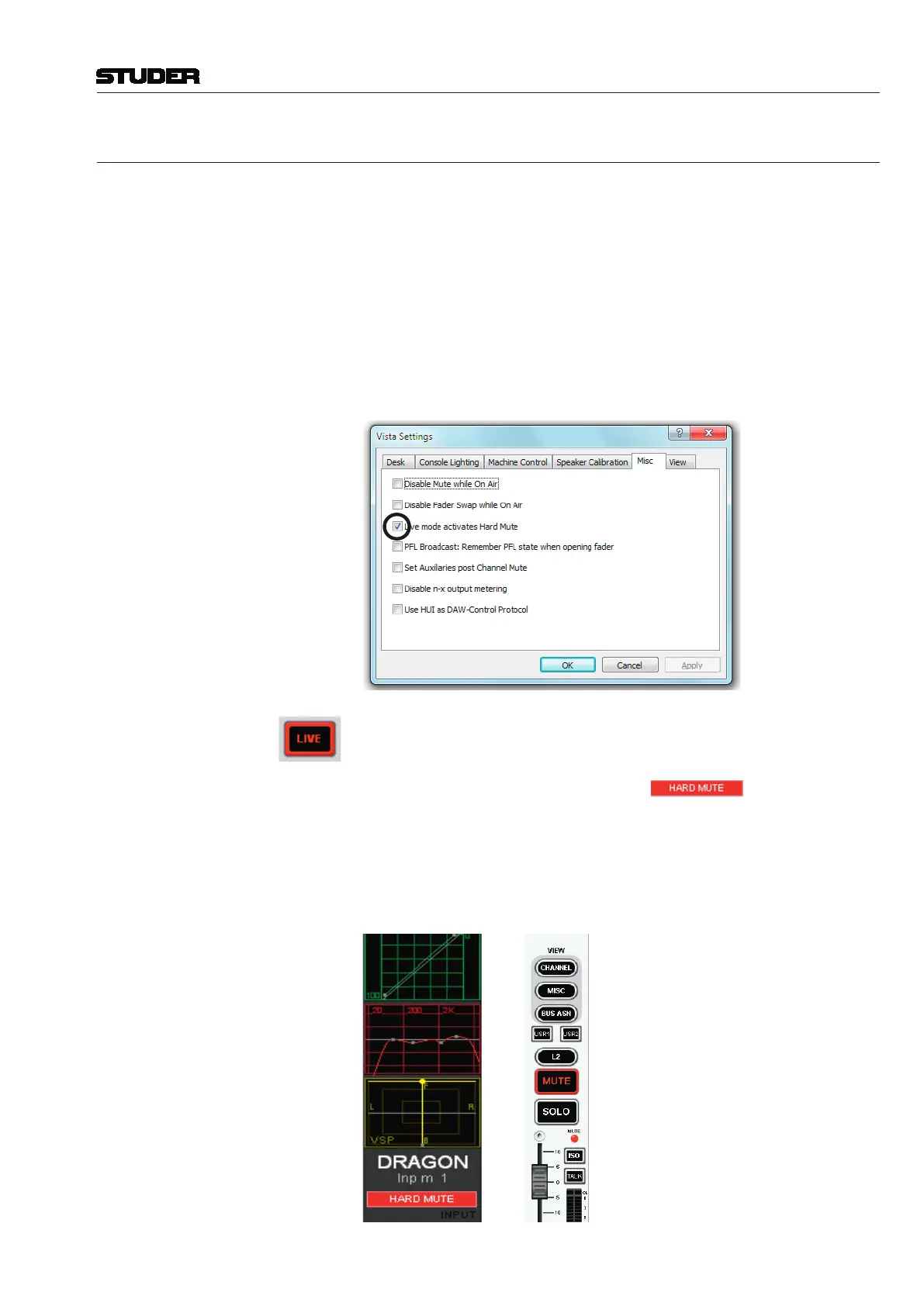 Settings.” window. Select the Misc tab and tick the Live mode activates
