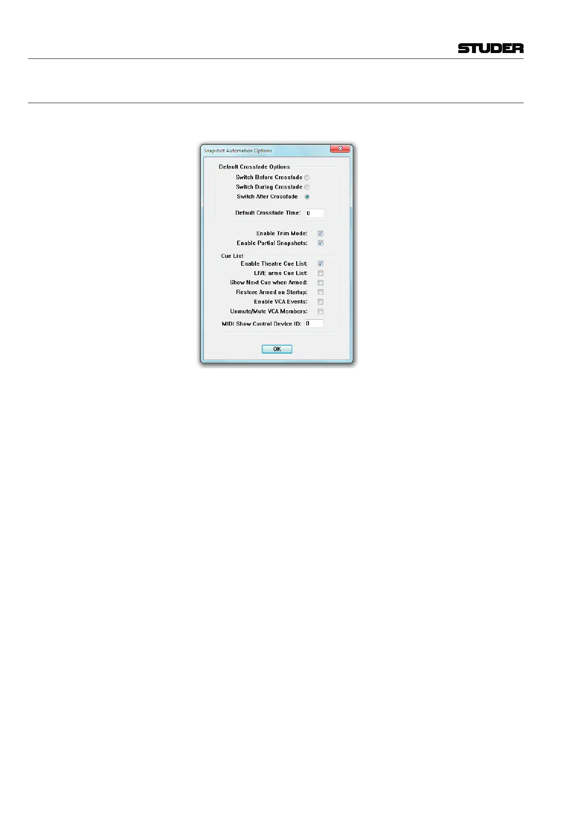 Default Crossfade Options The system allows cross-fading between two cues. The default cross-fade