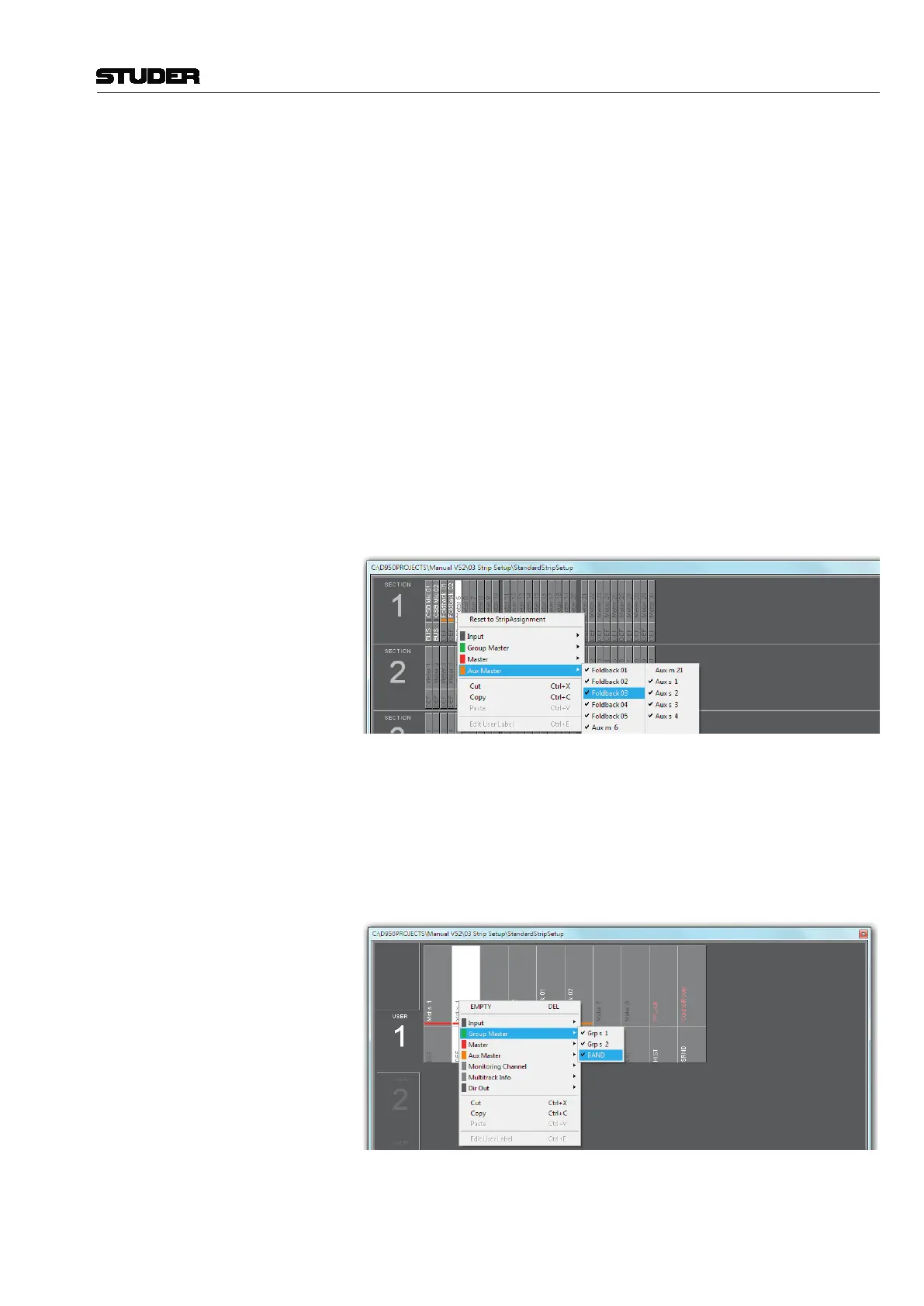 Assignment is done in the strip setup window. First, click the ‘Fader Bay
