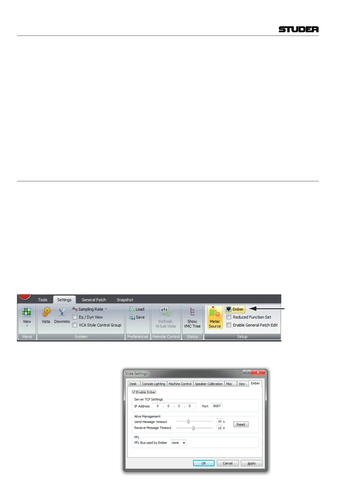 On the Settings ribbon tab, the Ember setup window can be openend.