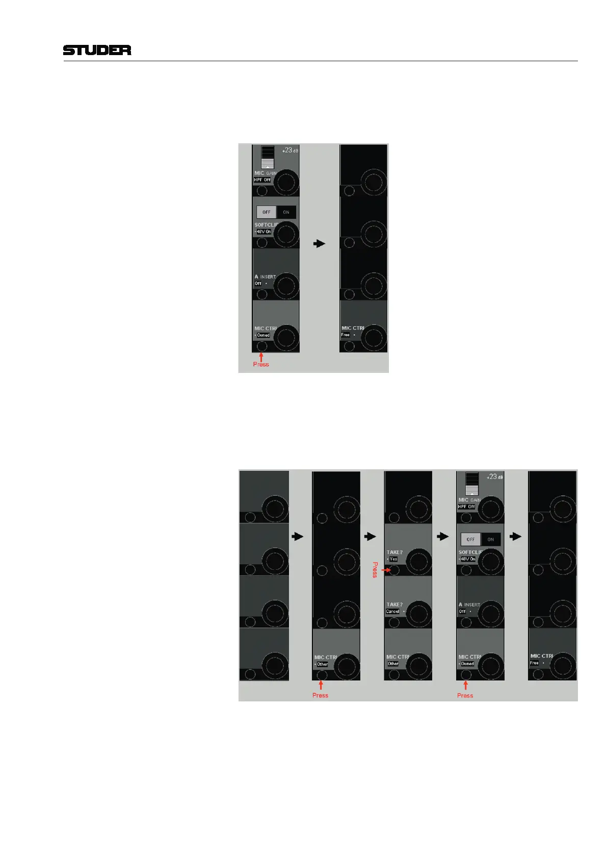 1b First, no microphone is connected to the channel. Then, a shared mic currently