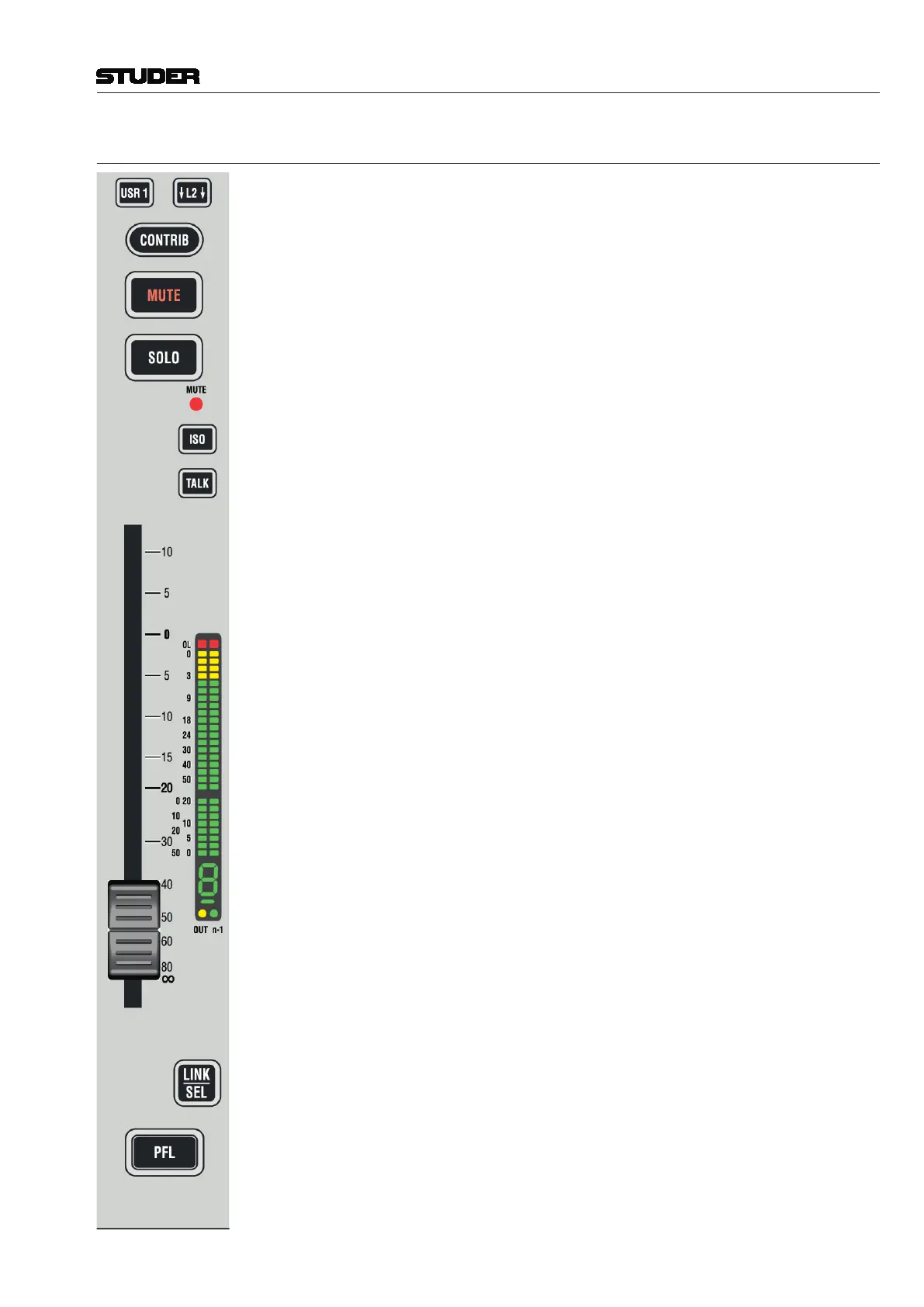 PFL Activates pre-fader listening mode. Signal is fed to the near-field monitoring