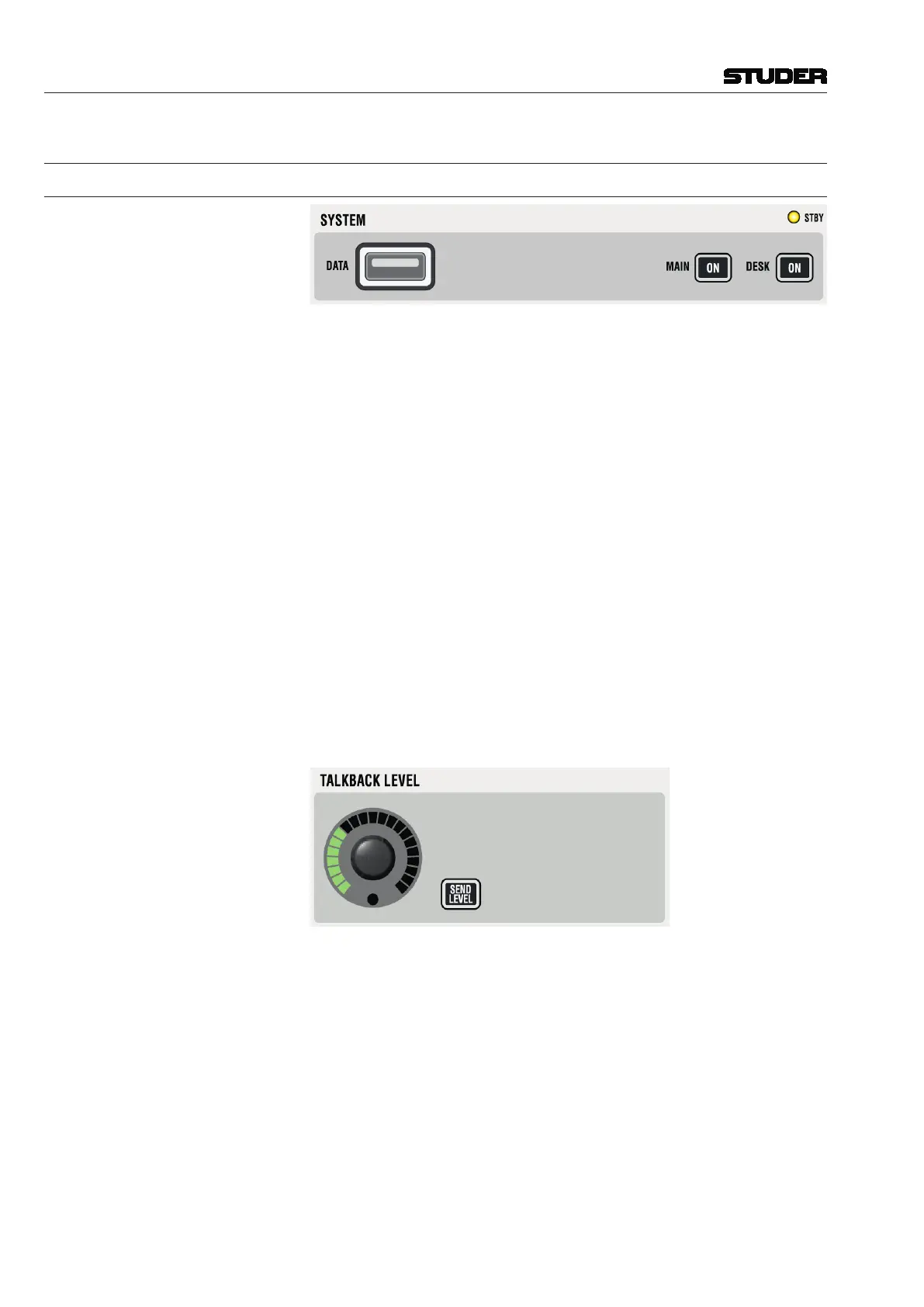 SEND LEVEL If the SEND LEVEL key is active, the TALKBACK LEVEL knob adjusts the input