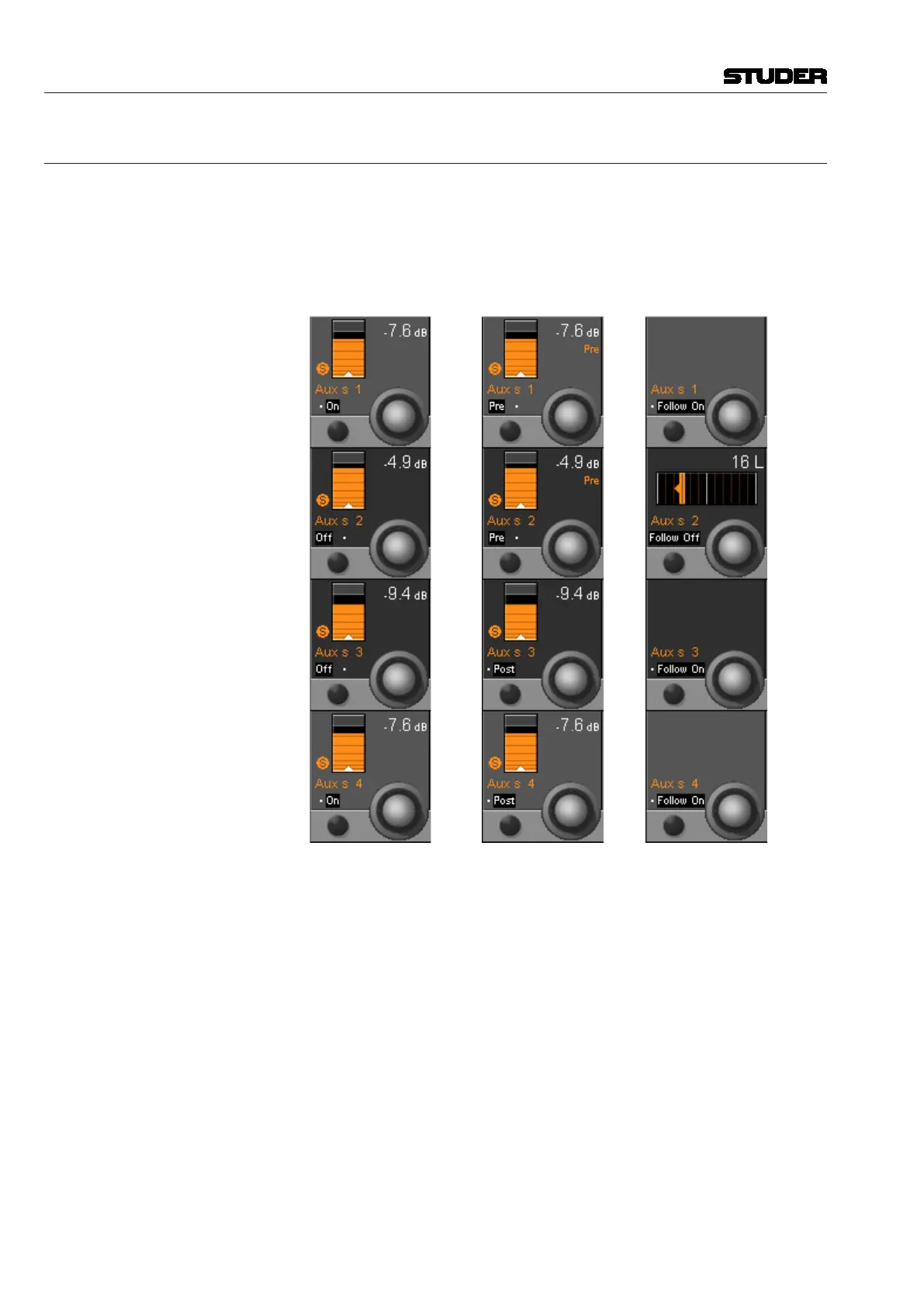 signal sent to the stereo AUX bus can be selected from Pre (pre-fader, i.e.