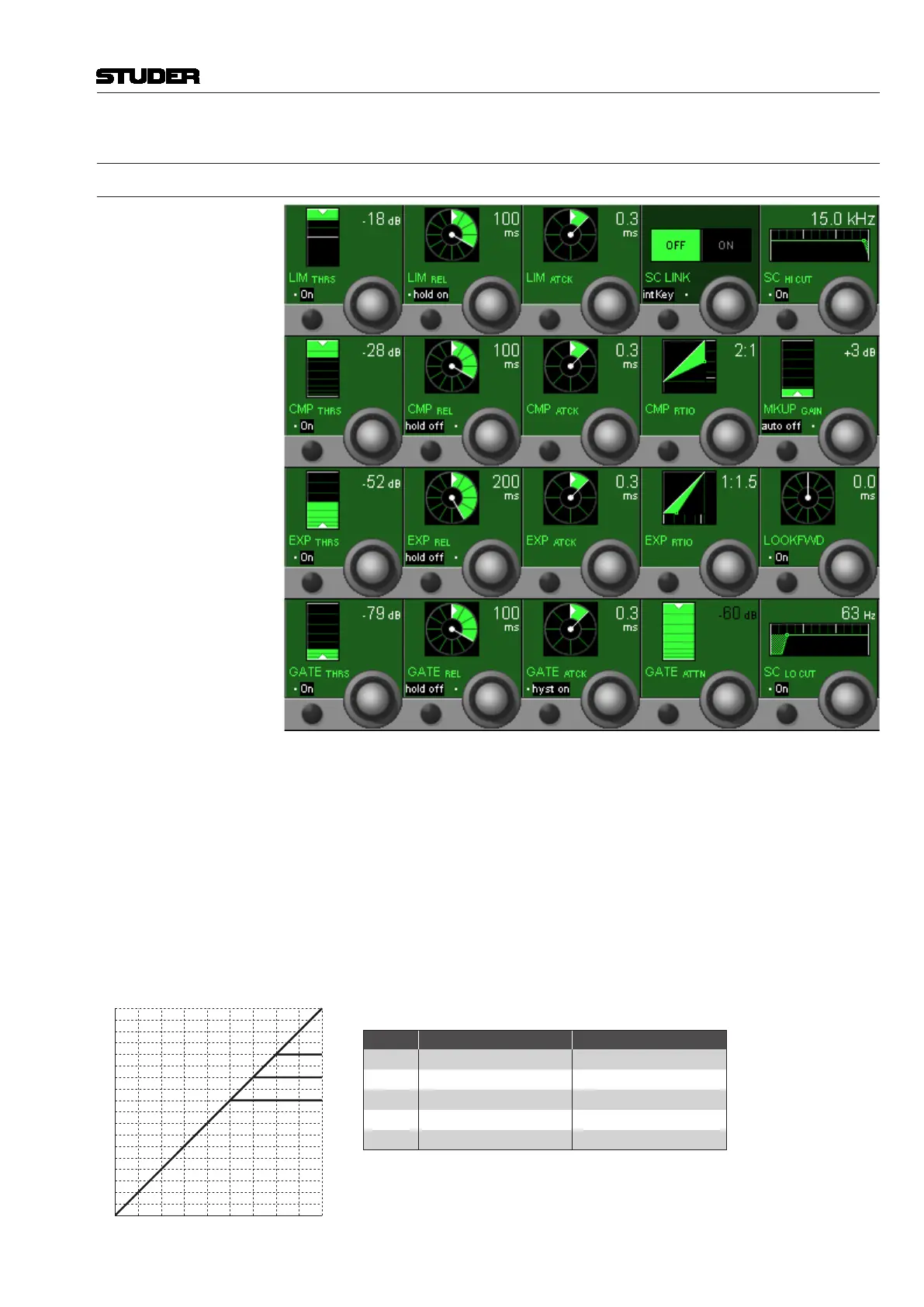 LIM ATCK Rotary The limiter attack time can be adjusted in 9 steps within a 200 µs to 1 ms