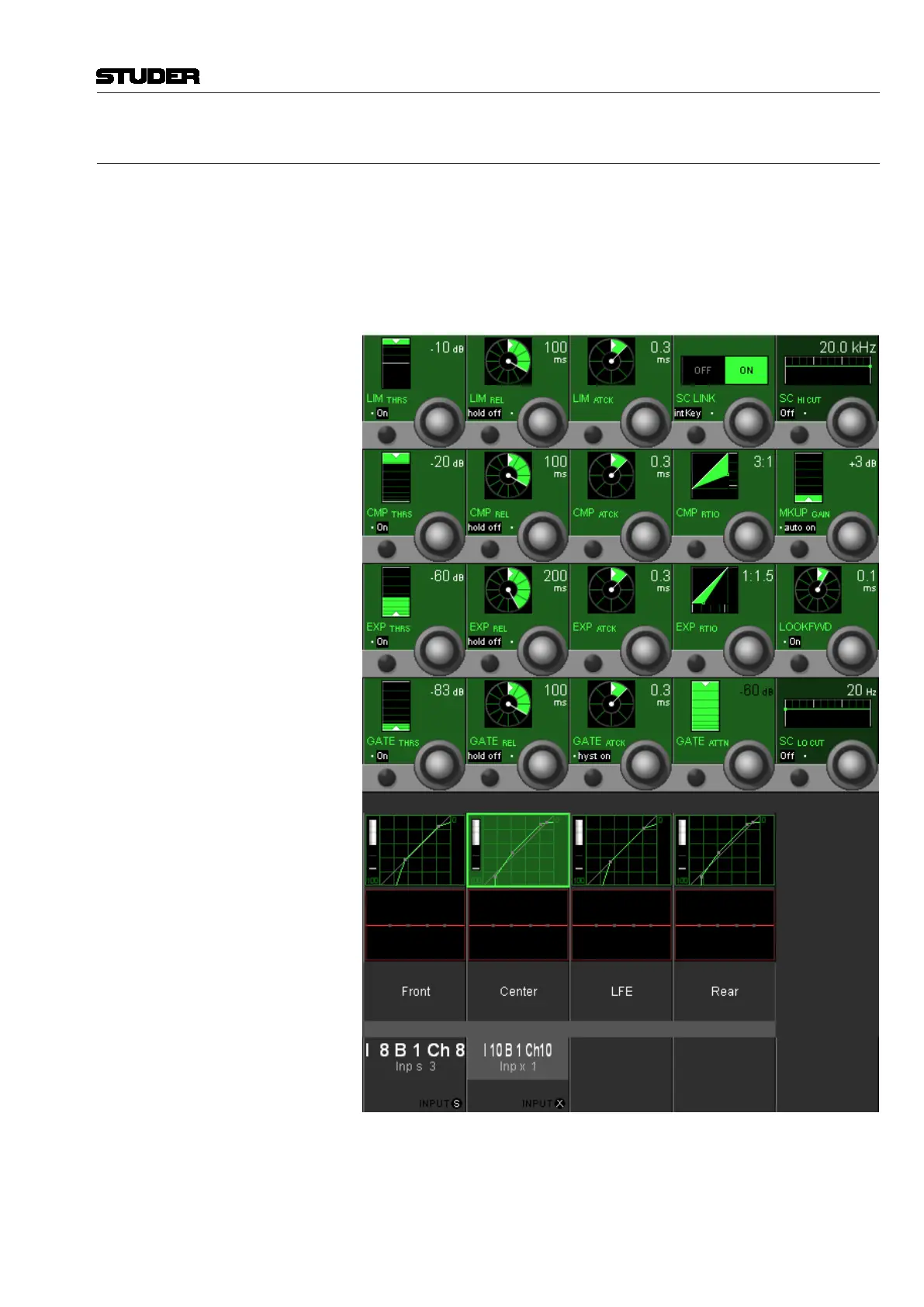 area that allows modifying the EQ and dynamics parameters individually for