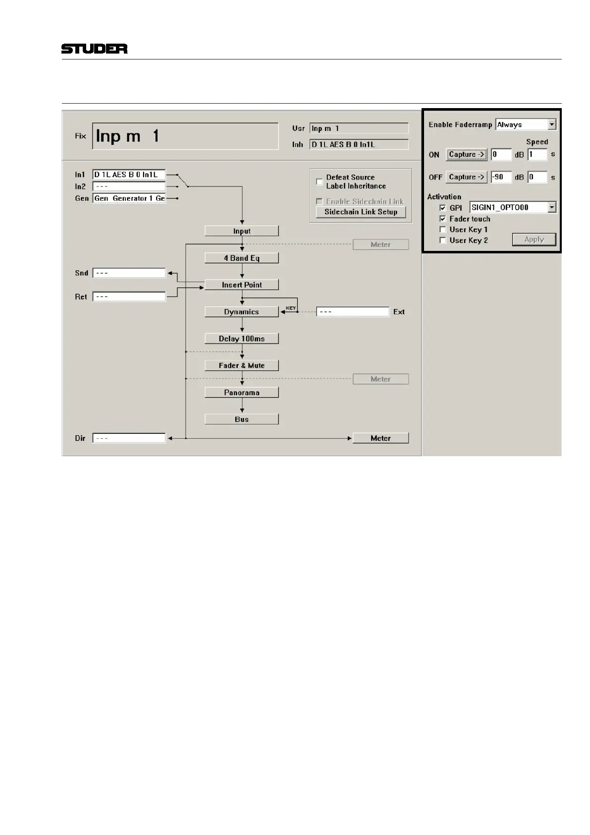 feature, the console operator determines the Fader Open/Close values, as well