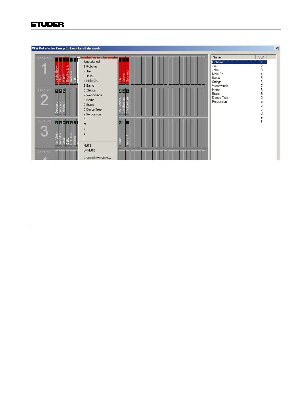 VCA labels, and channel mute status per cue is preferred, rather than working