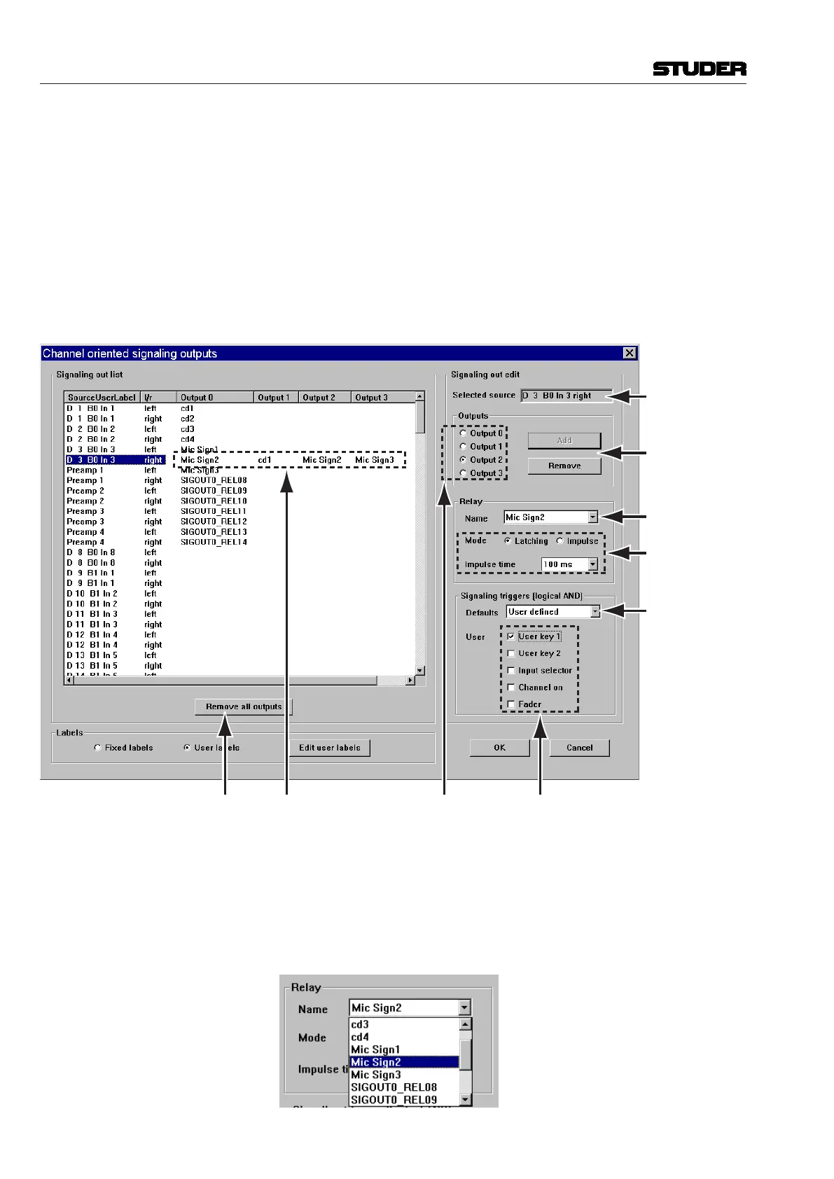 2. Within the Signaling Out Edit window, select the desired output 0 to 3. In