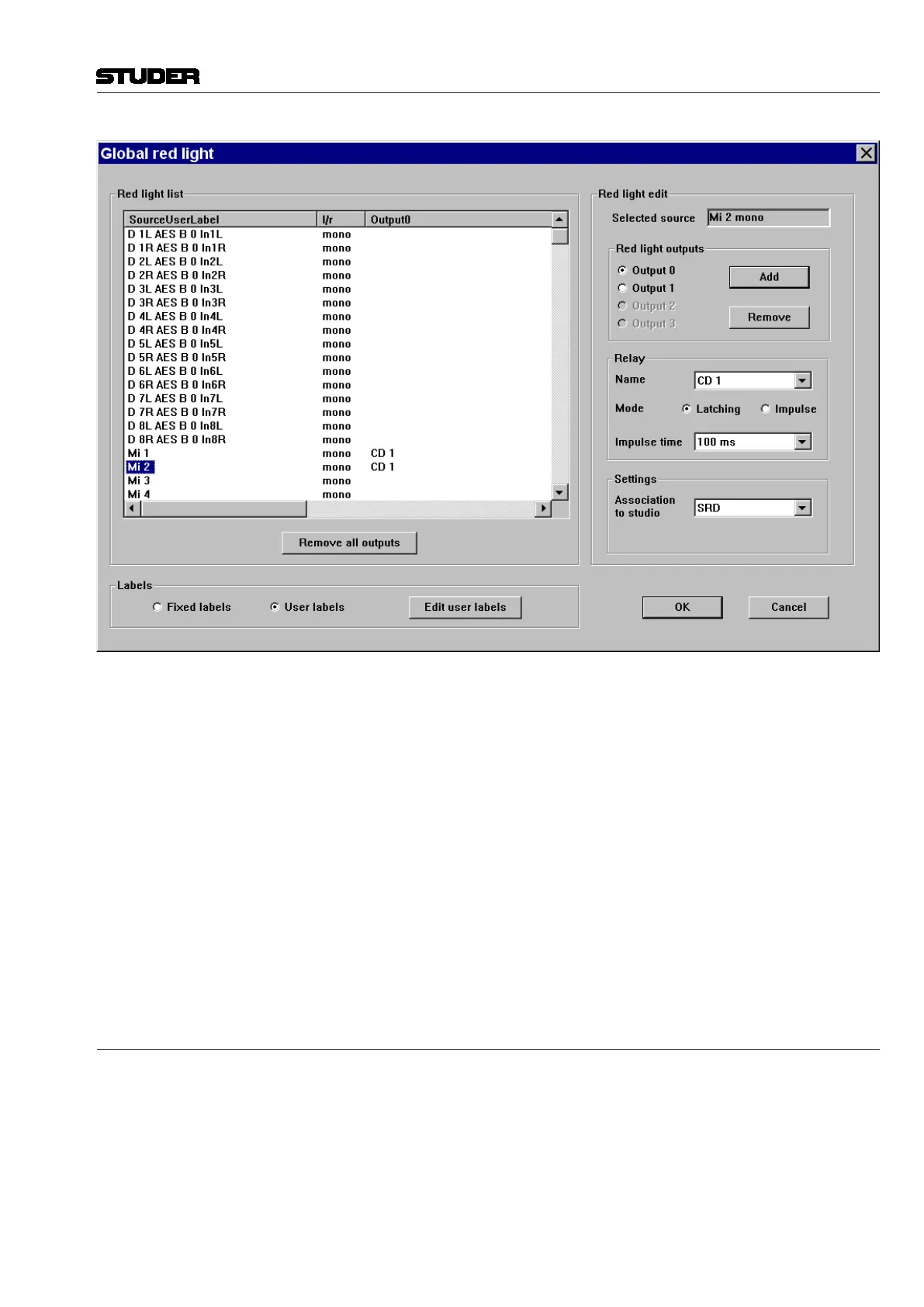 case, several relays can be configured independently. To select a Studio, click