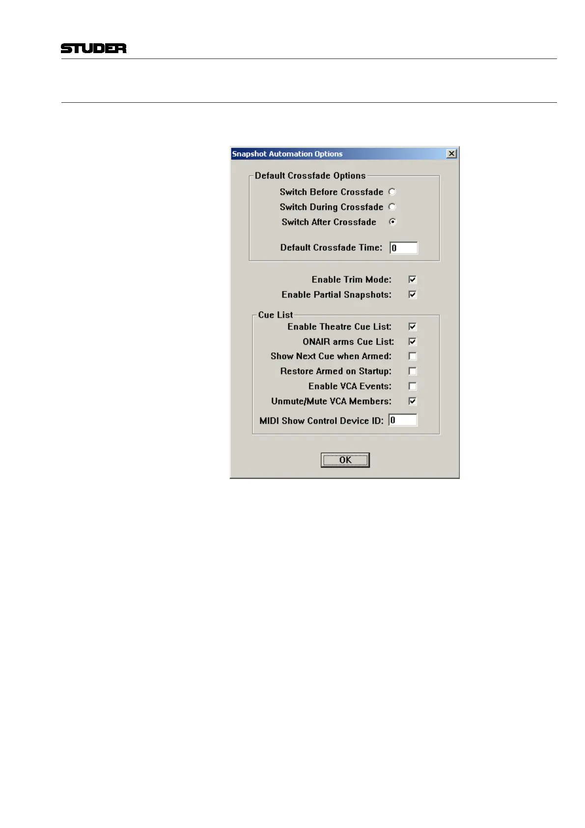 Studer Vista 5 M3 - Option: Snapshot Automation
