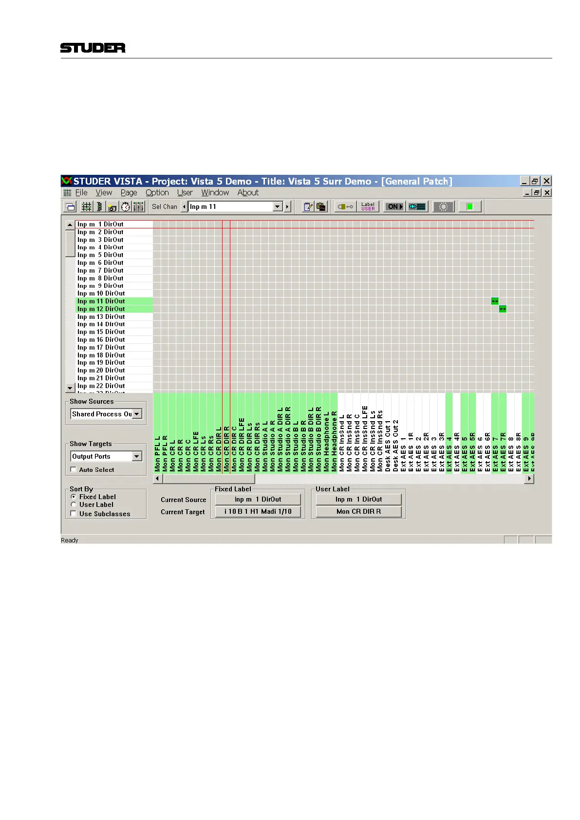 Within the General Patch window, the various cross point routing of sources