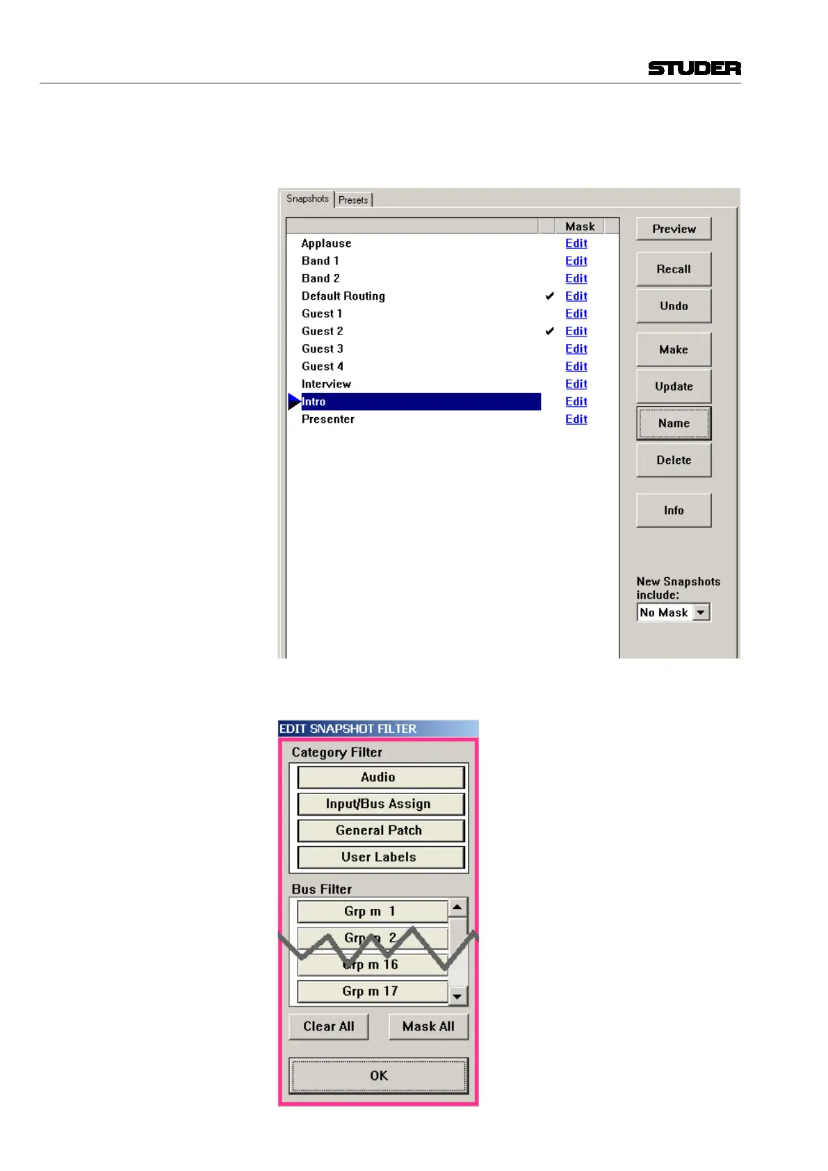 Snapshot Functions Display and control of snapshot settings (in other words, complete ‘pictures’