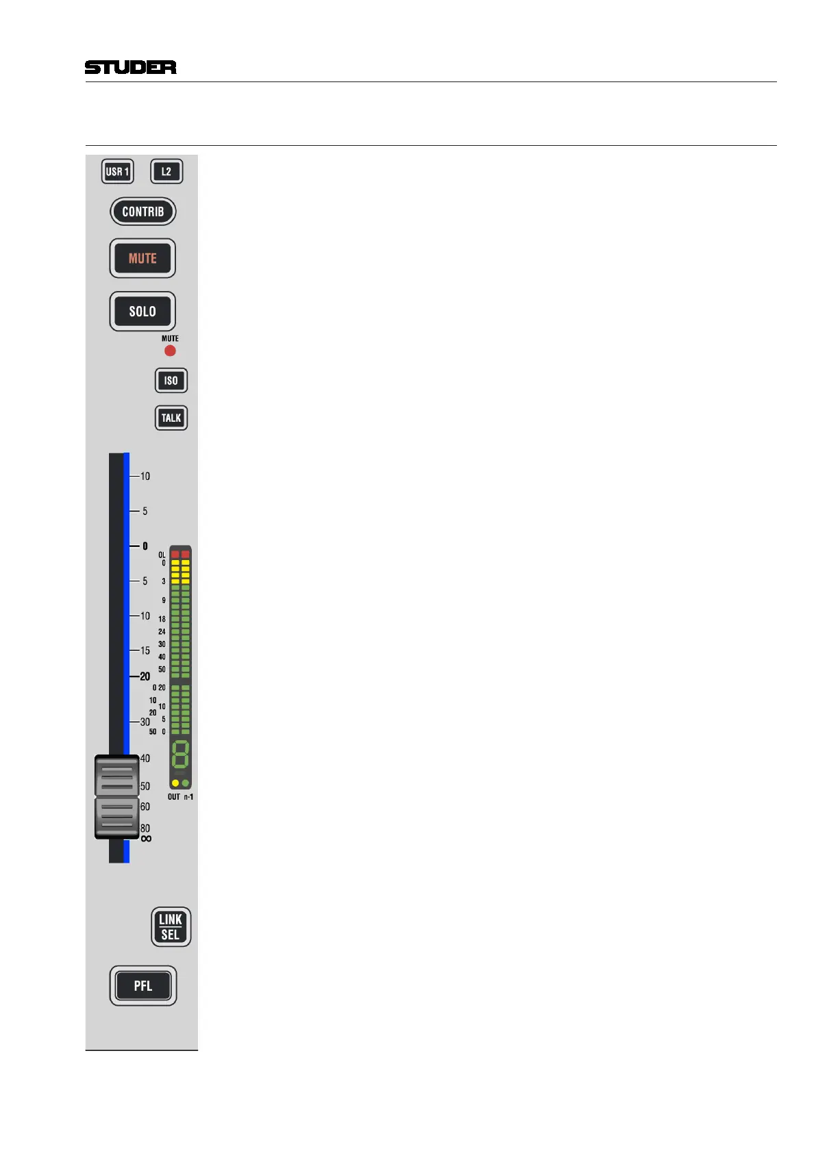 MUTE Recording of the channel mute. If half-lit: Channel mute is armed (i.e. in Trim