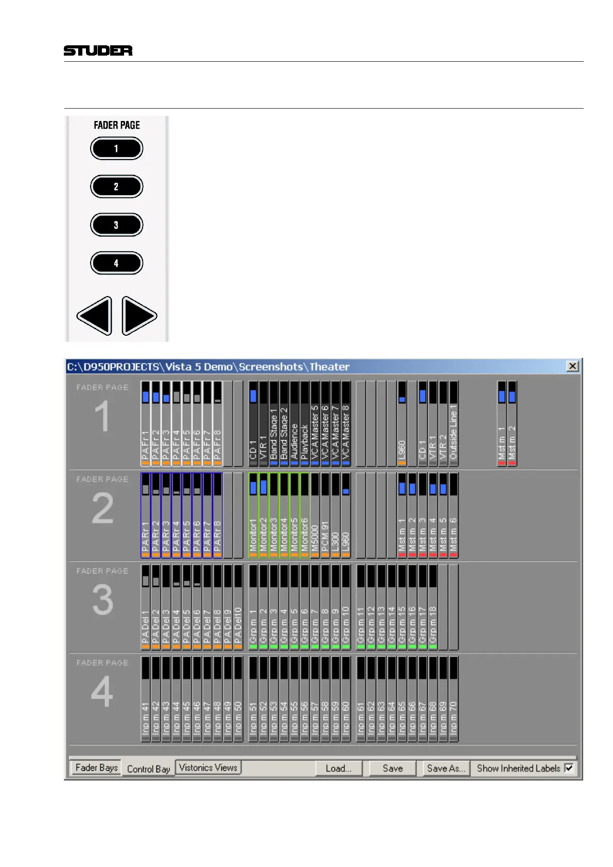 These keys allow changing of the Control Bay faders to different pages. Each