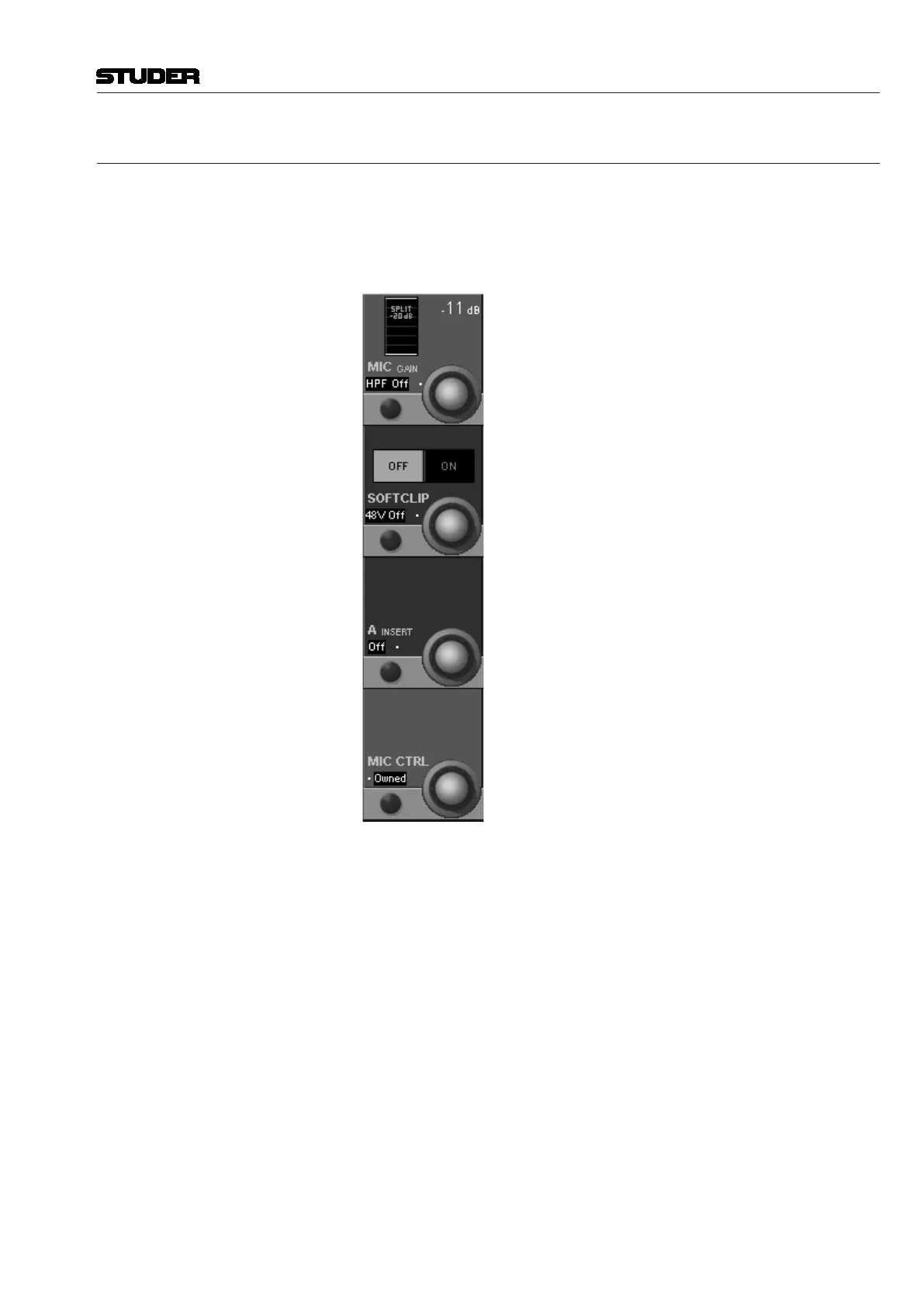 MIC CTRL Free/Other/Owned Toggle switch for remote control of the analog mic/line input parameters. In