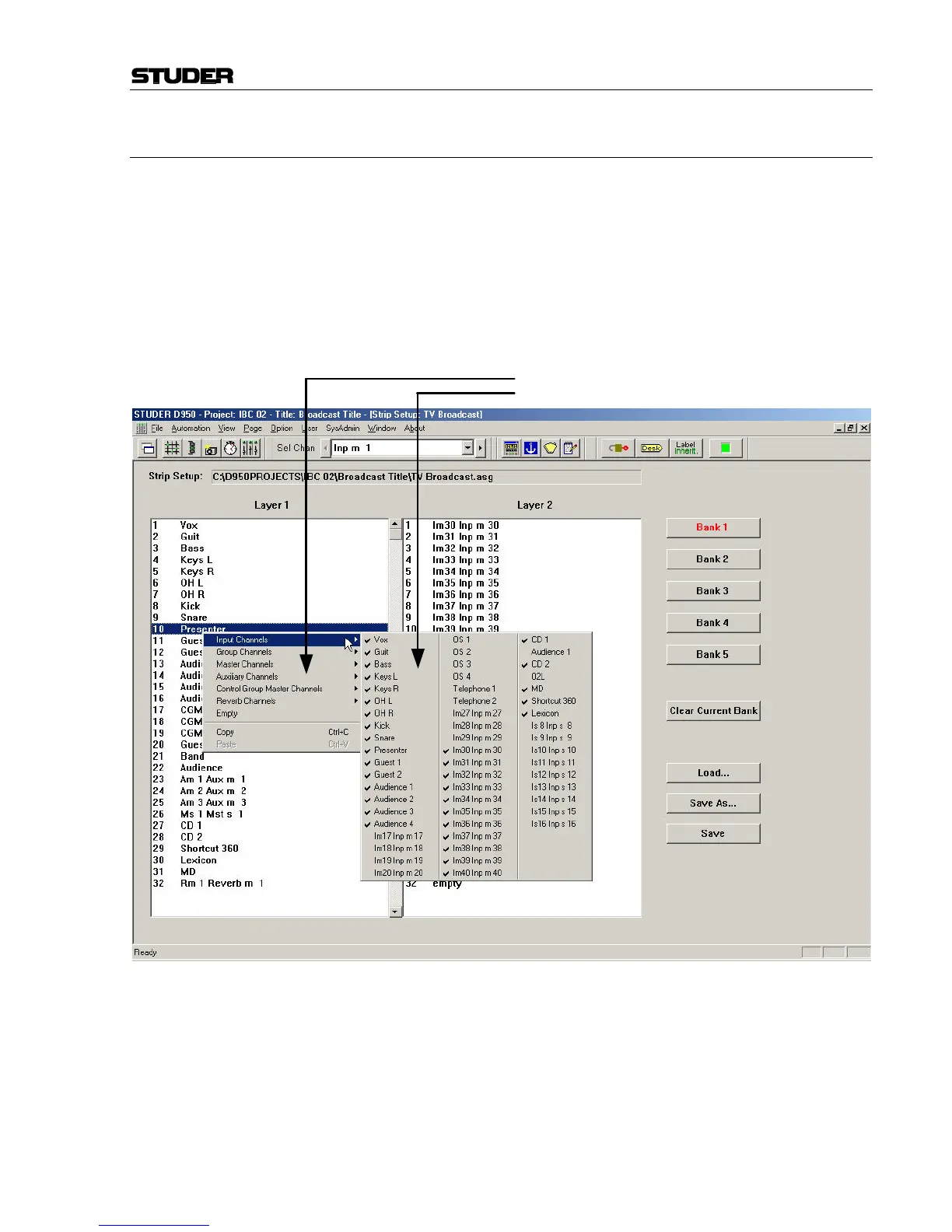 display the two Layers of that particular Bank, and the current Strip As-