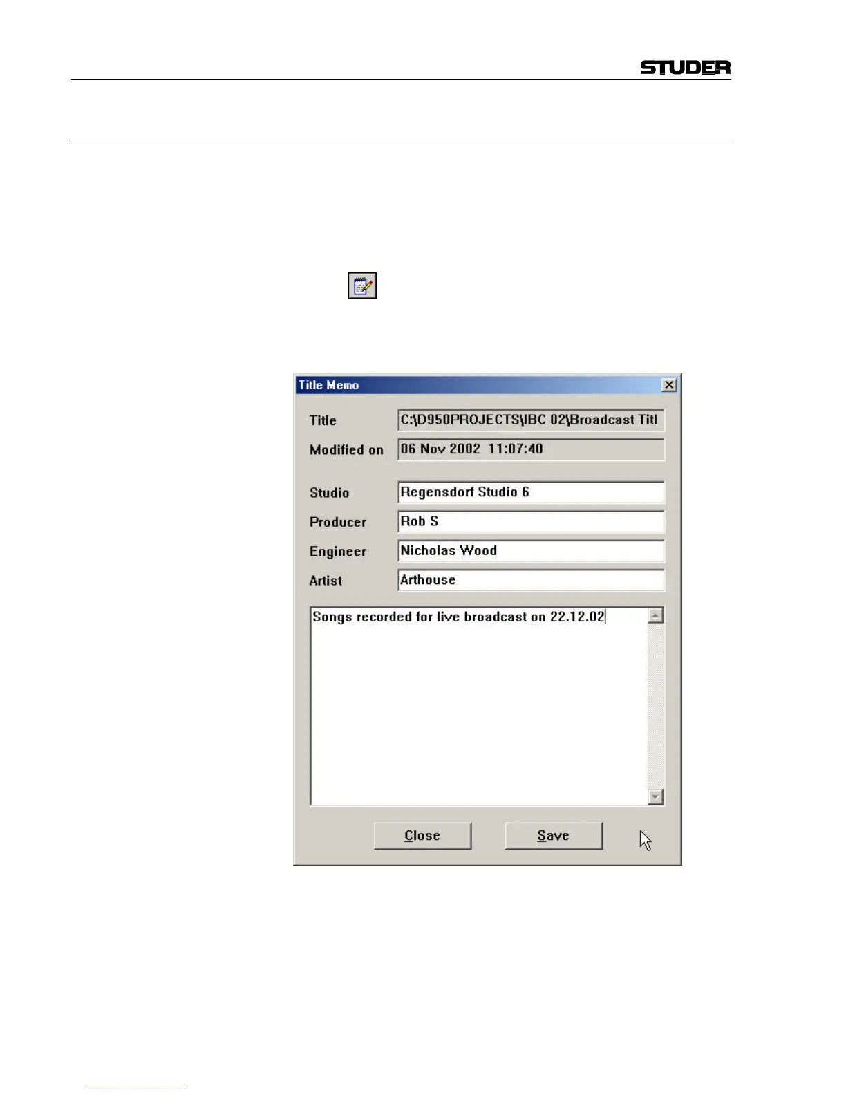 form Memo pad. The Title directory location and modification date/time
