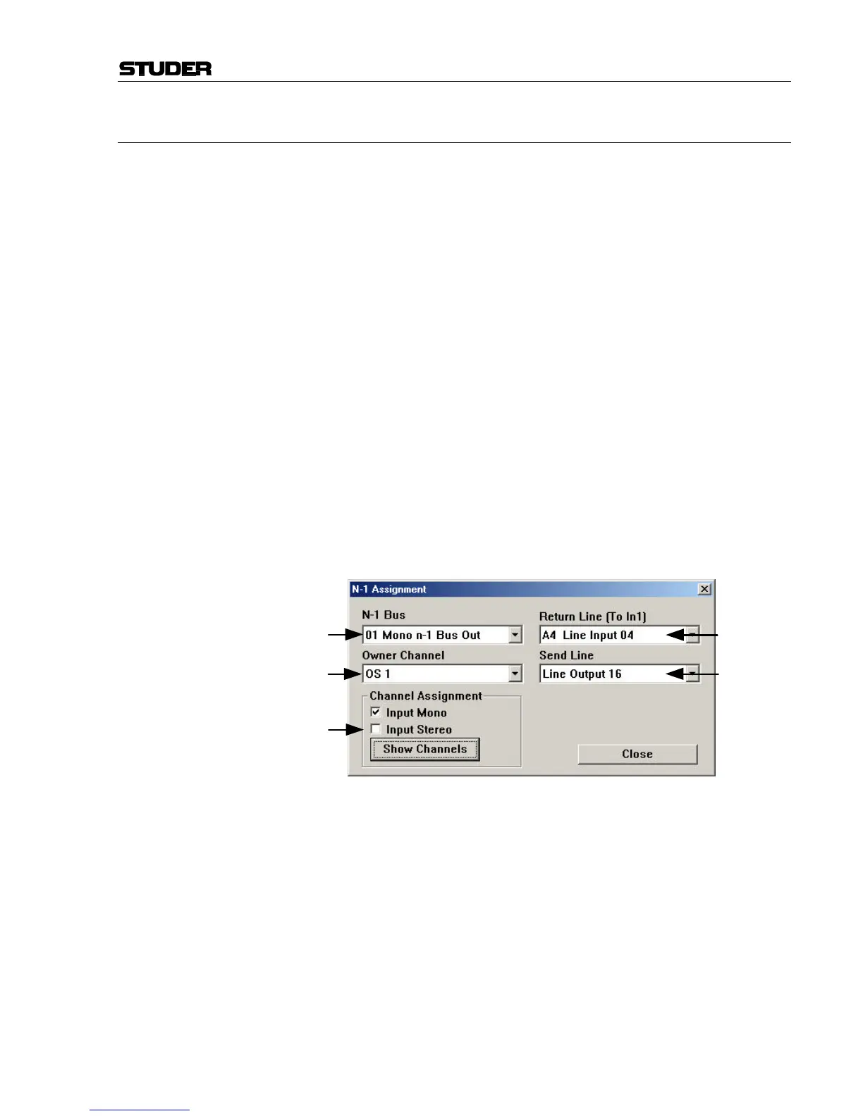 3 The channels which are to be sent to the –1 must be assigned to the