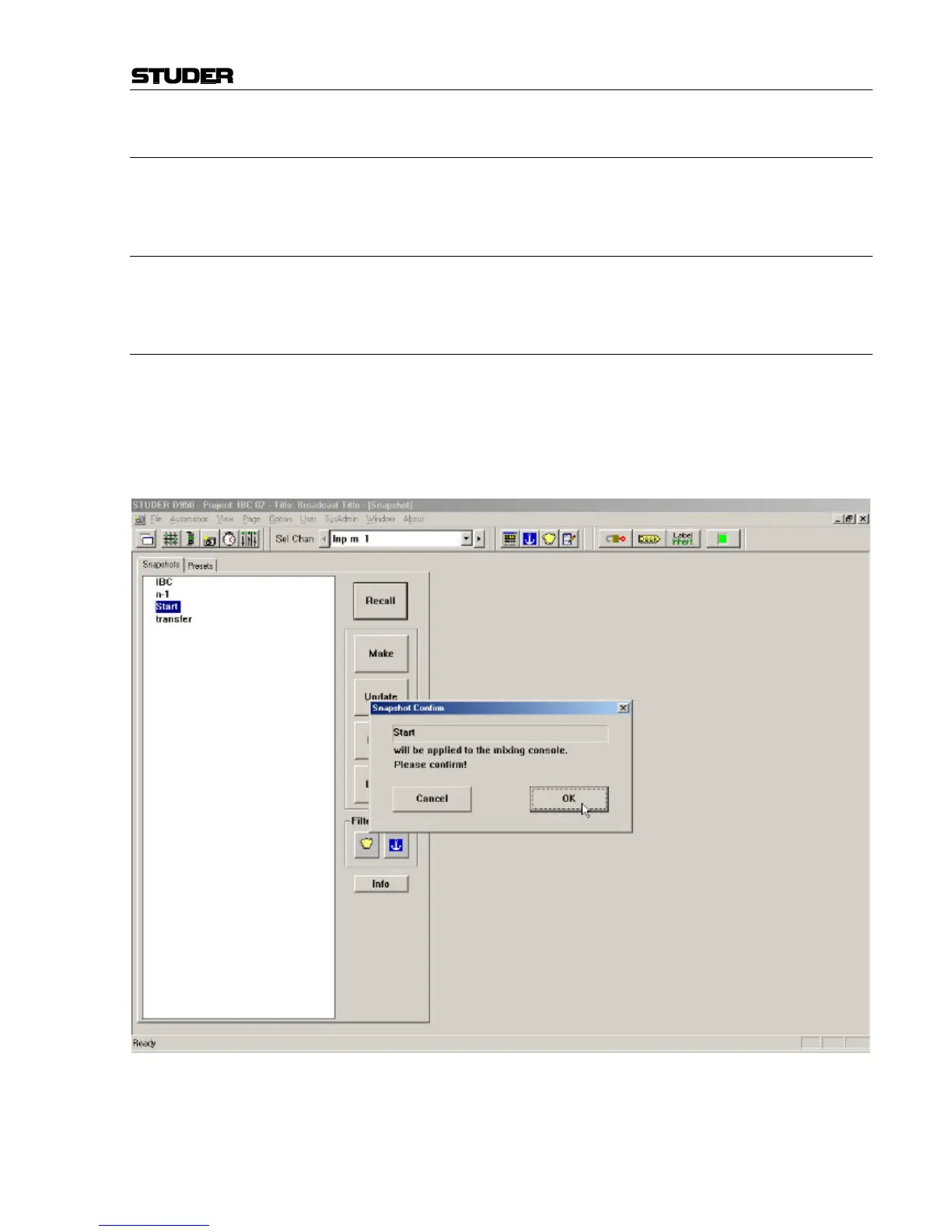 Snapshot/Preset, or click Cancel to cancel the Snapshot/Preset Recall).