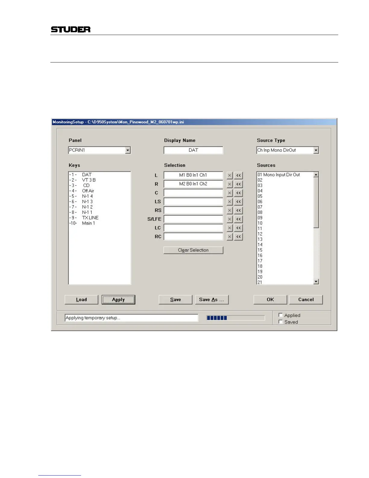 Panel Selection box: This box provides a pop-up menu used to select a control room or studio