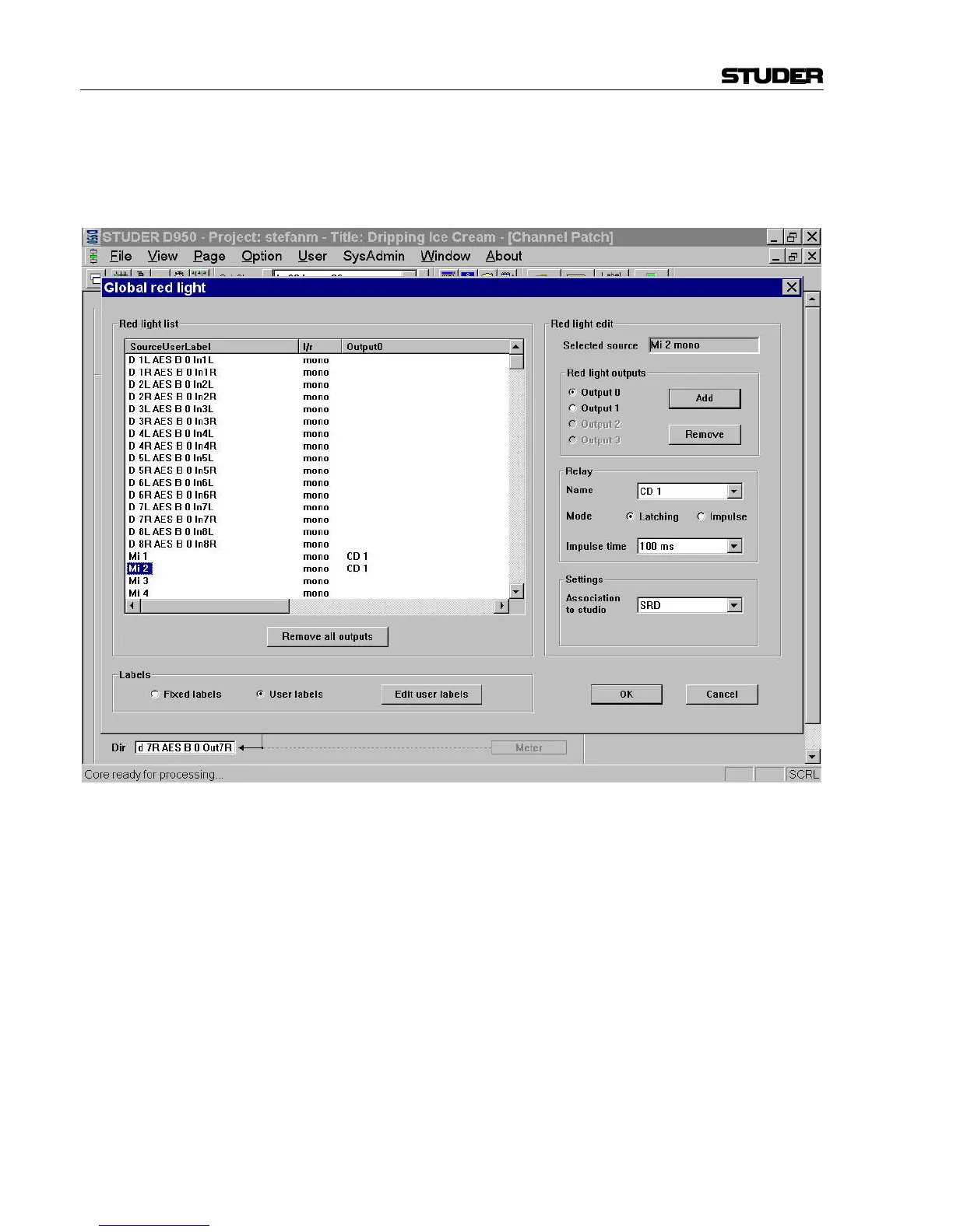 2. You can then add or remove a relay to/from this source in the Red Light