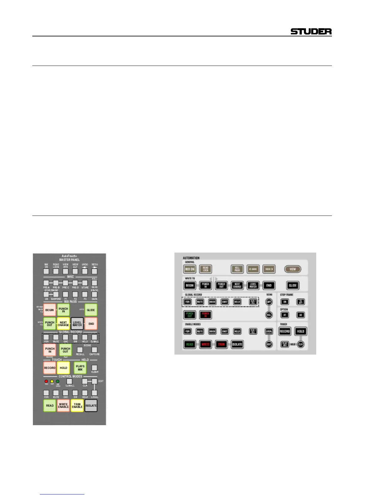 Note: Individual controls can be punched in and out independently of the Global