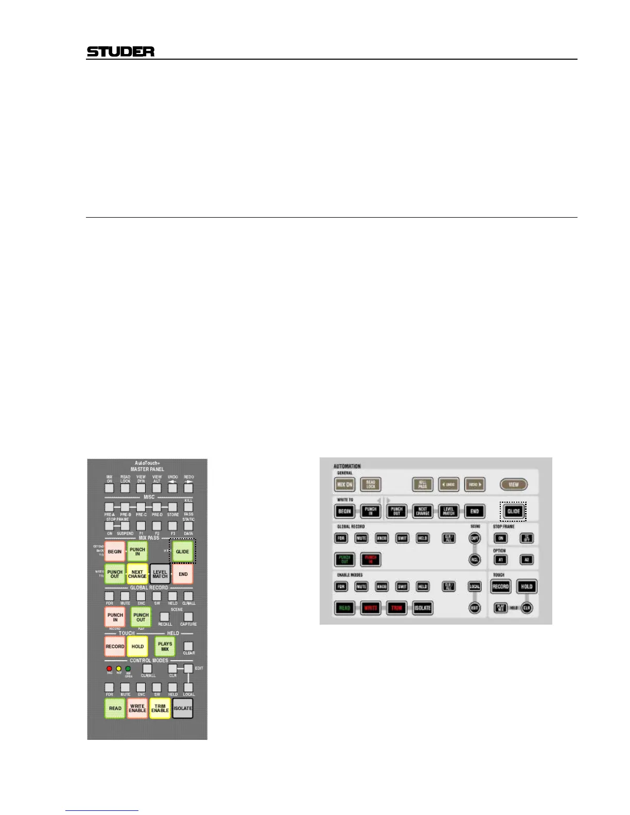 Glide functions are engaged by pressing the GLIDE key in the Mix Pass