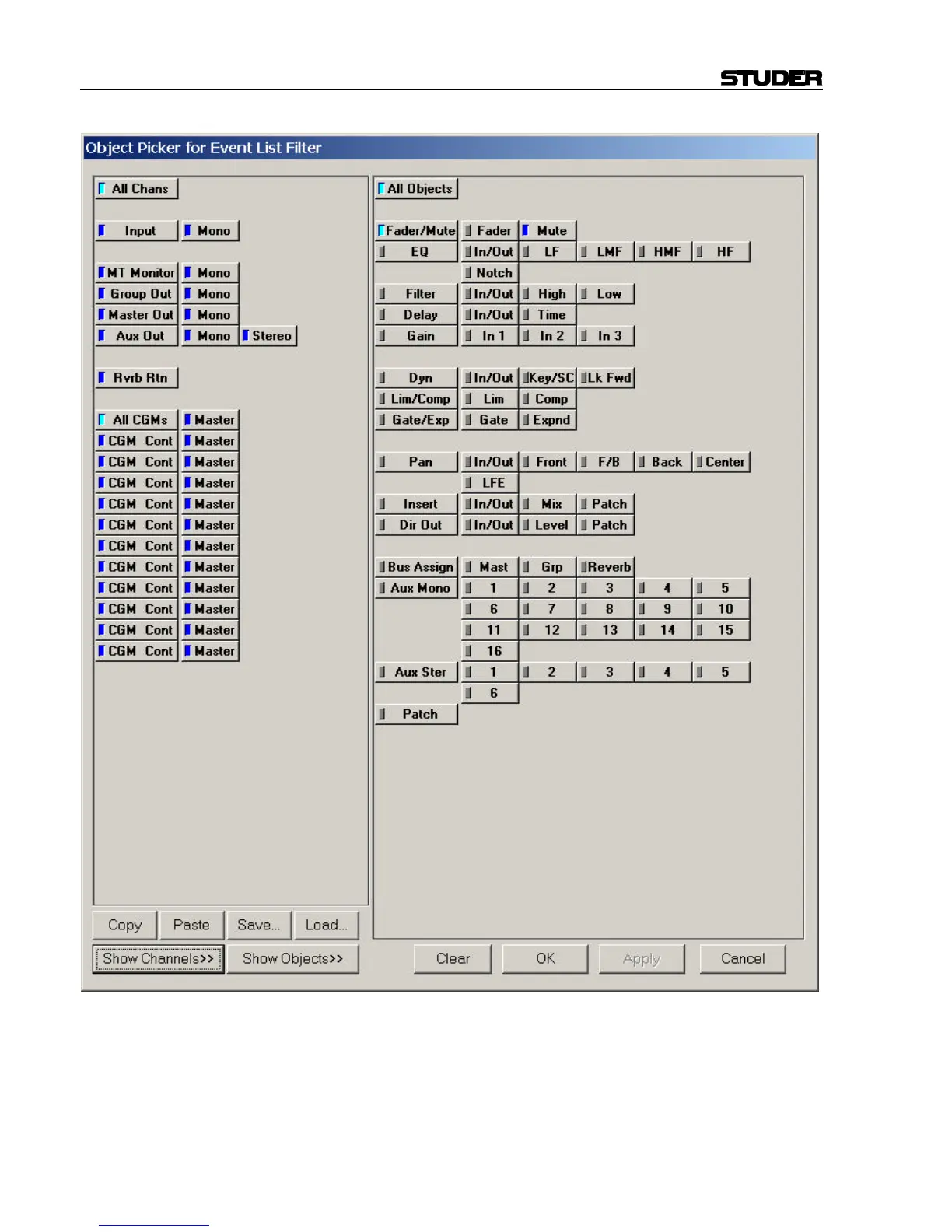 The Event List Filter provides the means to select desired controls within