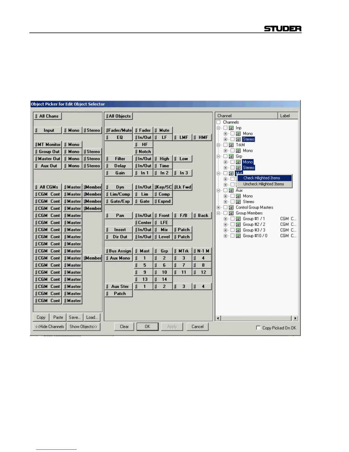 sponding element is checked on the tree. Likewise, if an item is checked on