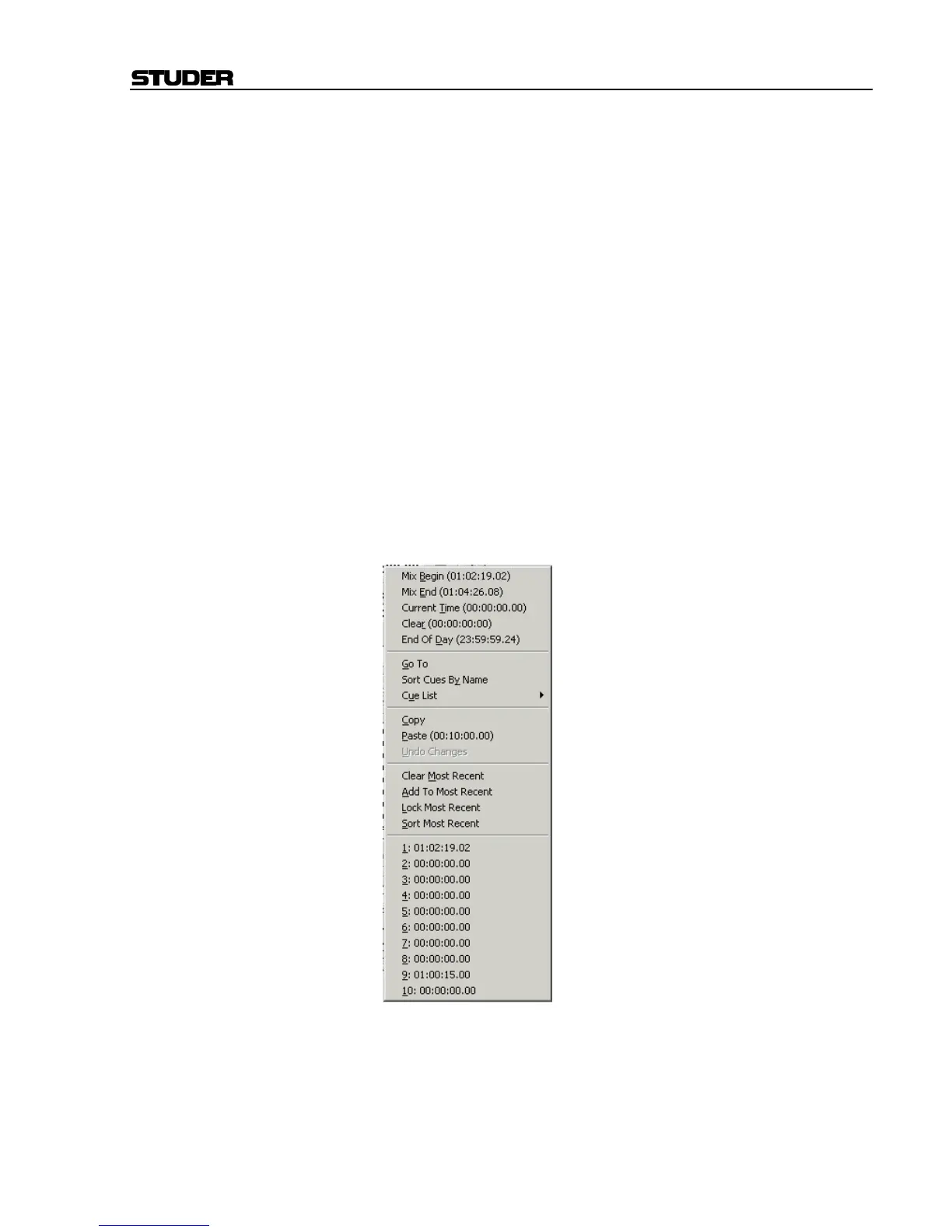 Mix/Timecode Items: • Mix Begin: This is the first timecode address within the selected mix