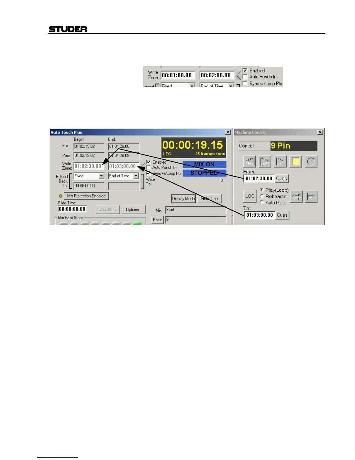 [7] Write Zone is defined by a BEGIN and an END timecode value. If acti-
