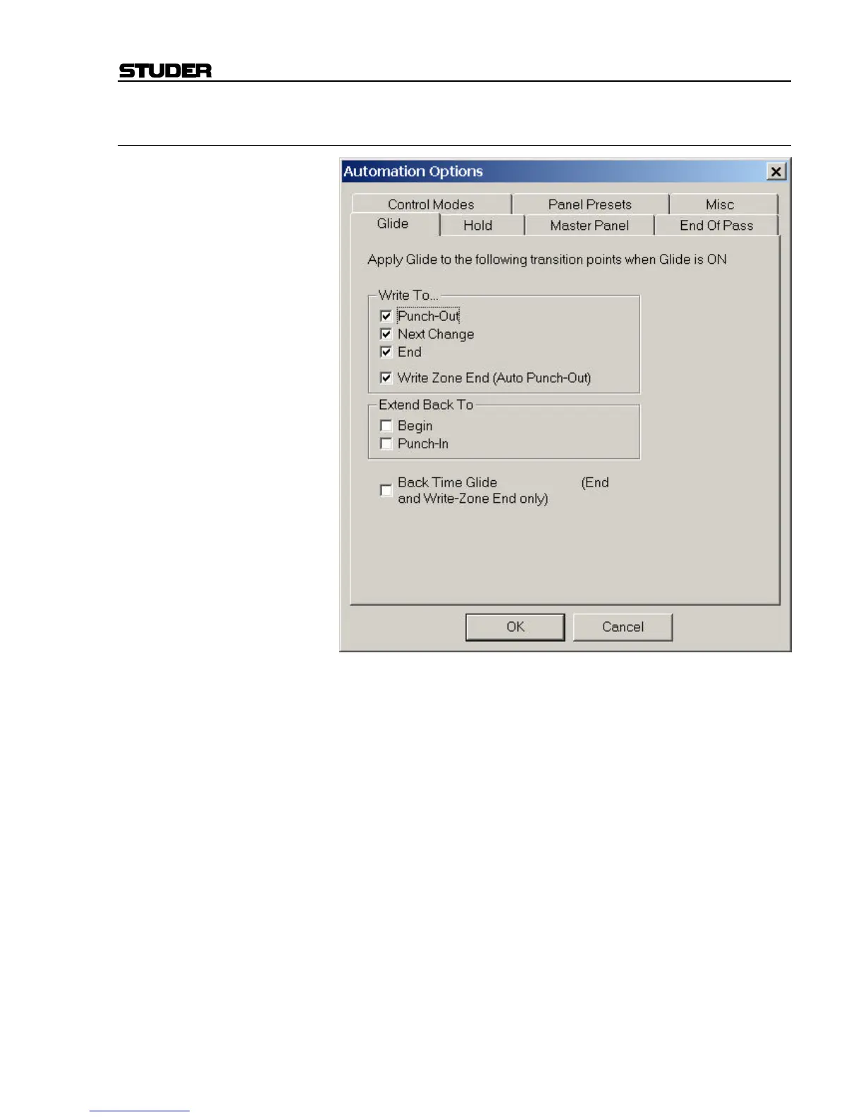 Glide at Punch-Out: When a control is punched out of Record into Playback the control will