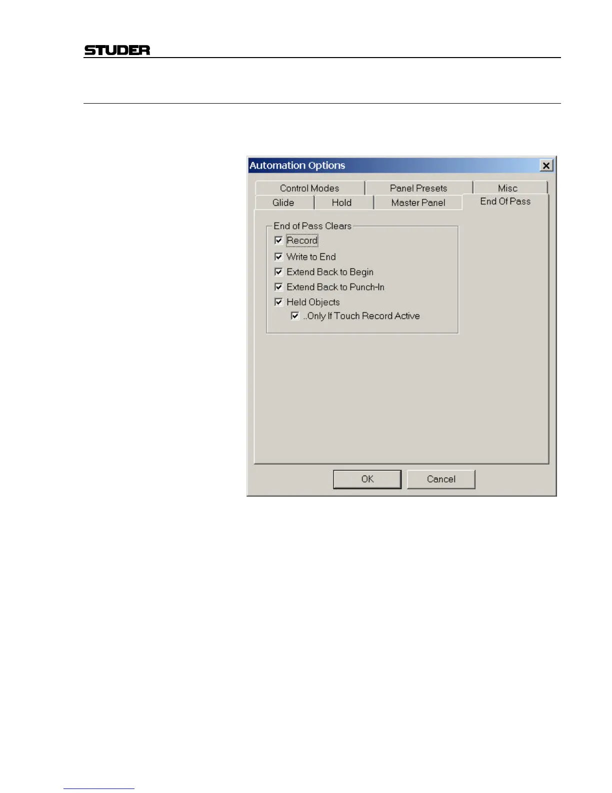 <…Only if Touch Record Active>: When checked, End of Pass will clear