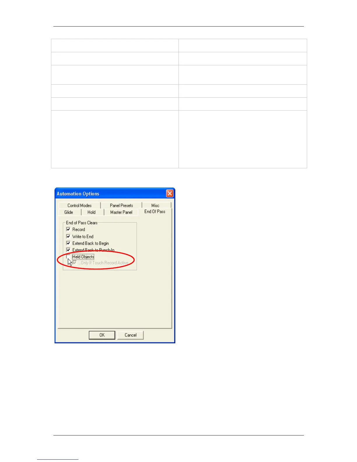 cases the option “End Of Pass Clears… Held