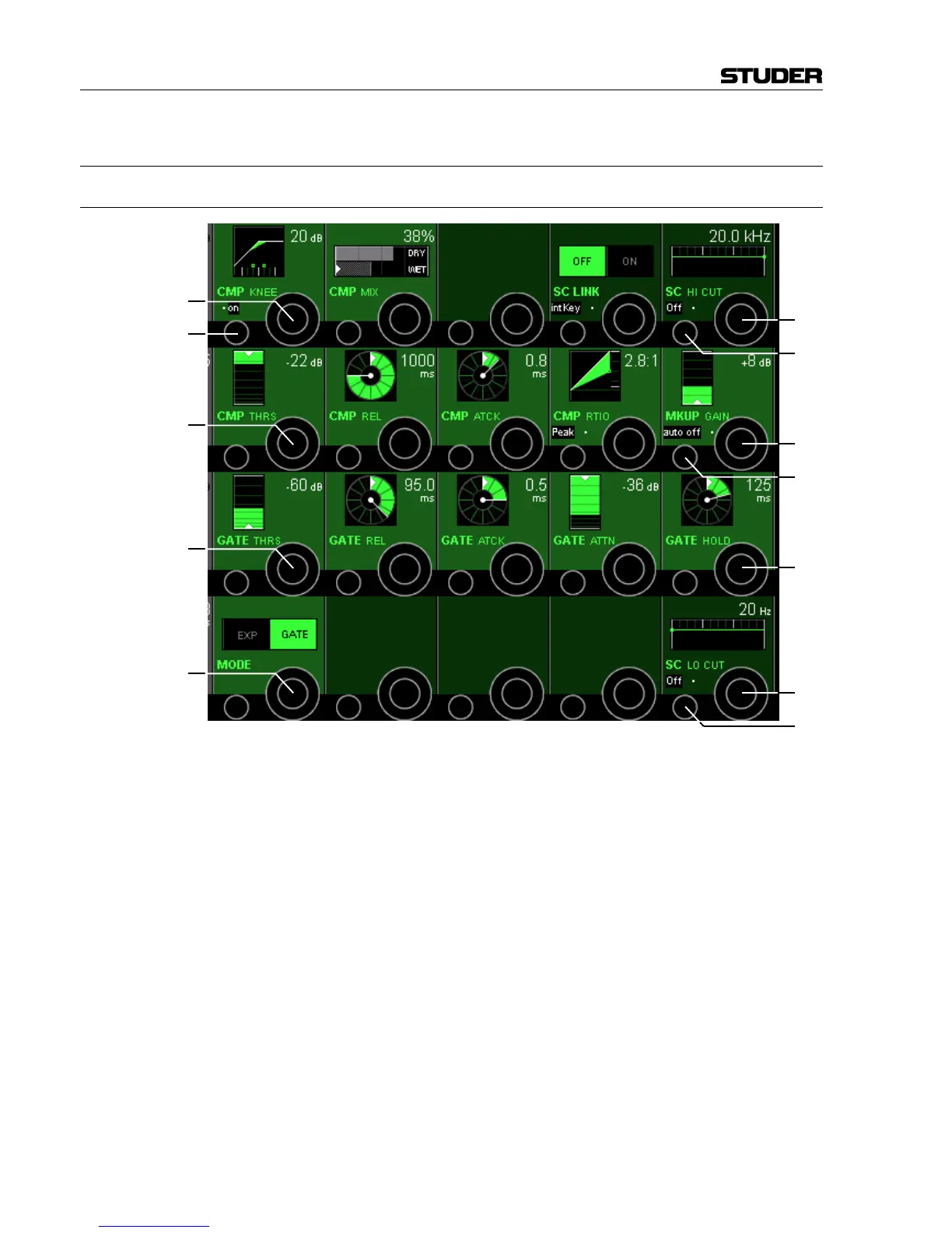which can be adjusted (soft knee width). The width is measured symmetri-