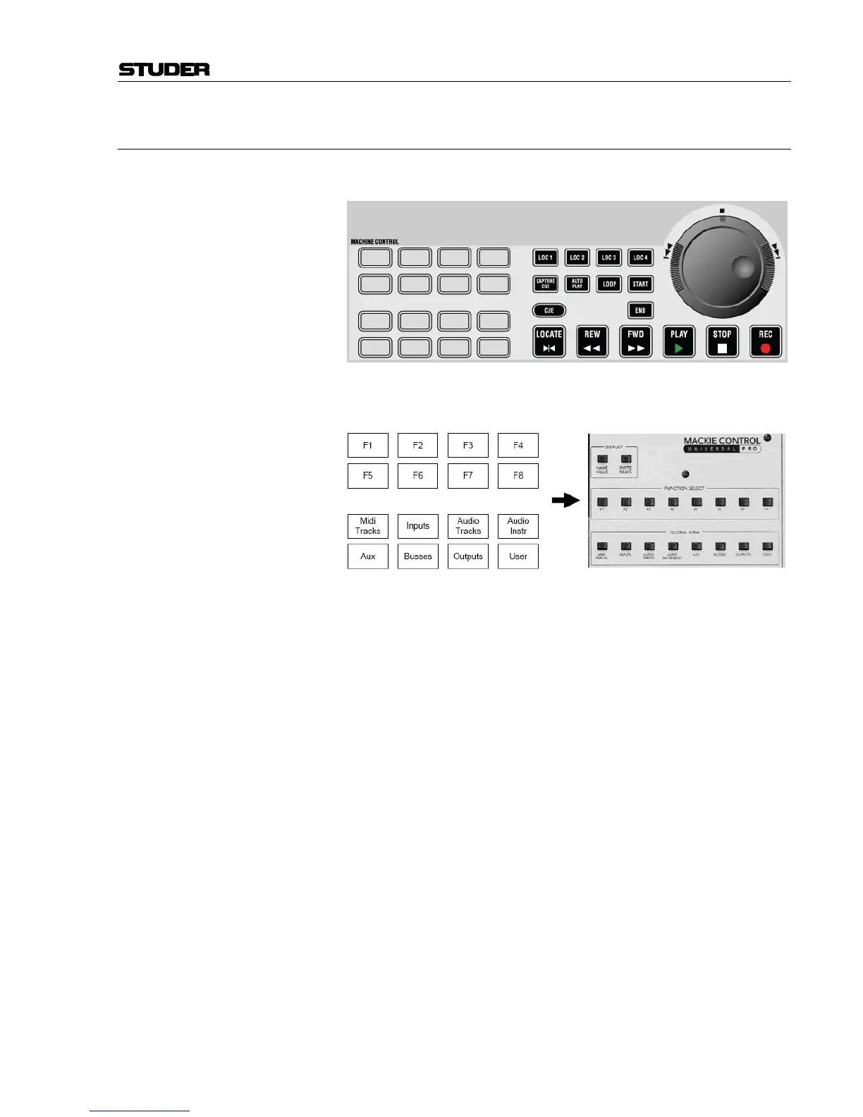 These keys are mapped to fixed MIDI commands, as on the Mackie control