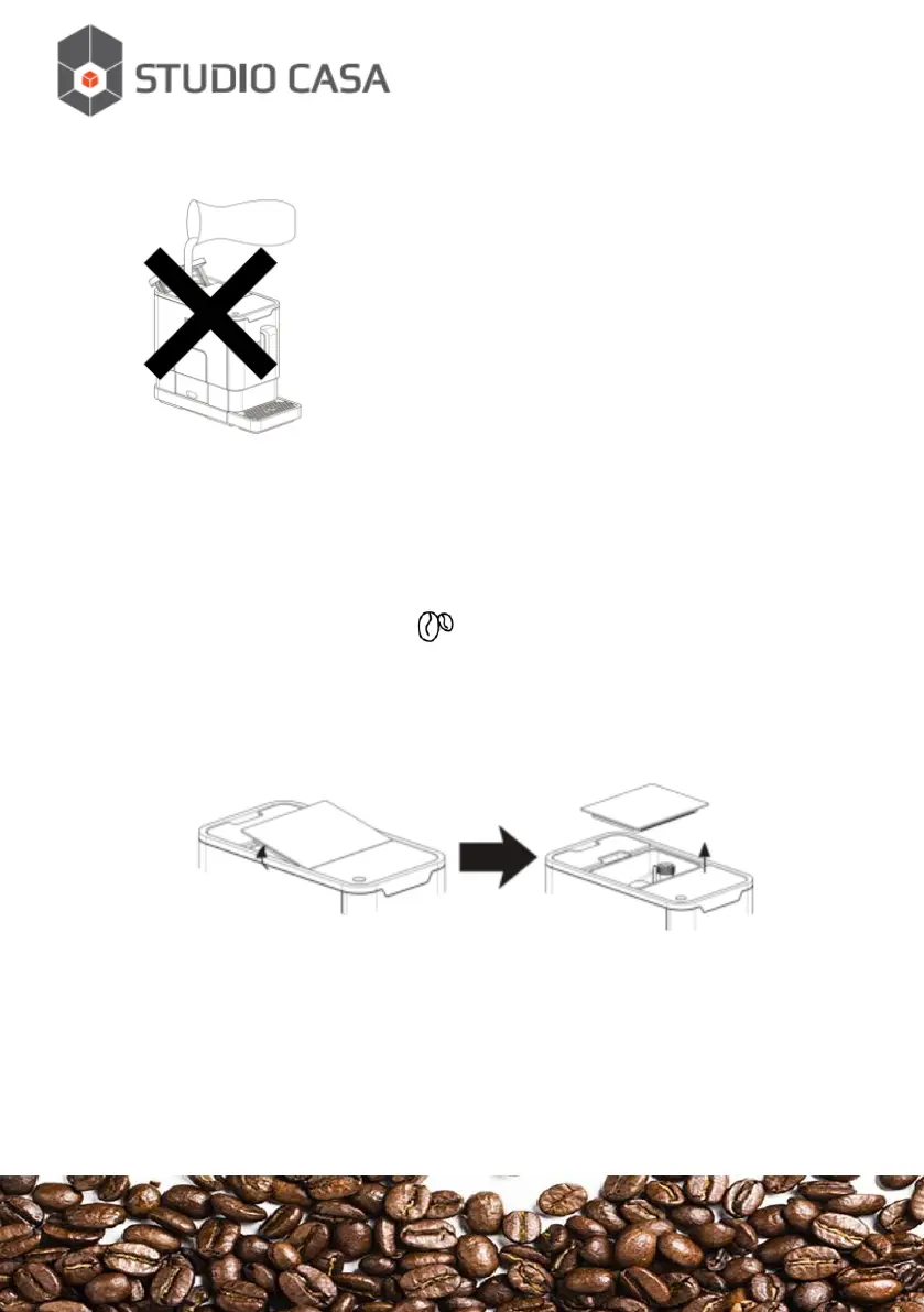 Ridicati capacul recipientului si adaugati boabe de cafea. Dupa