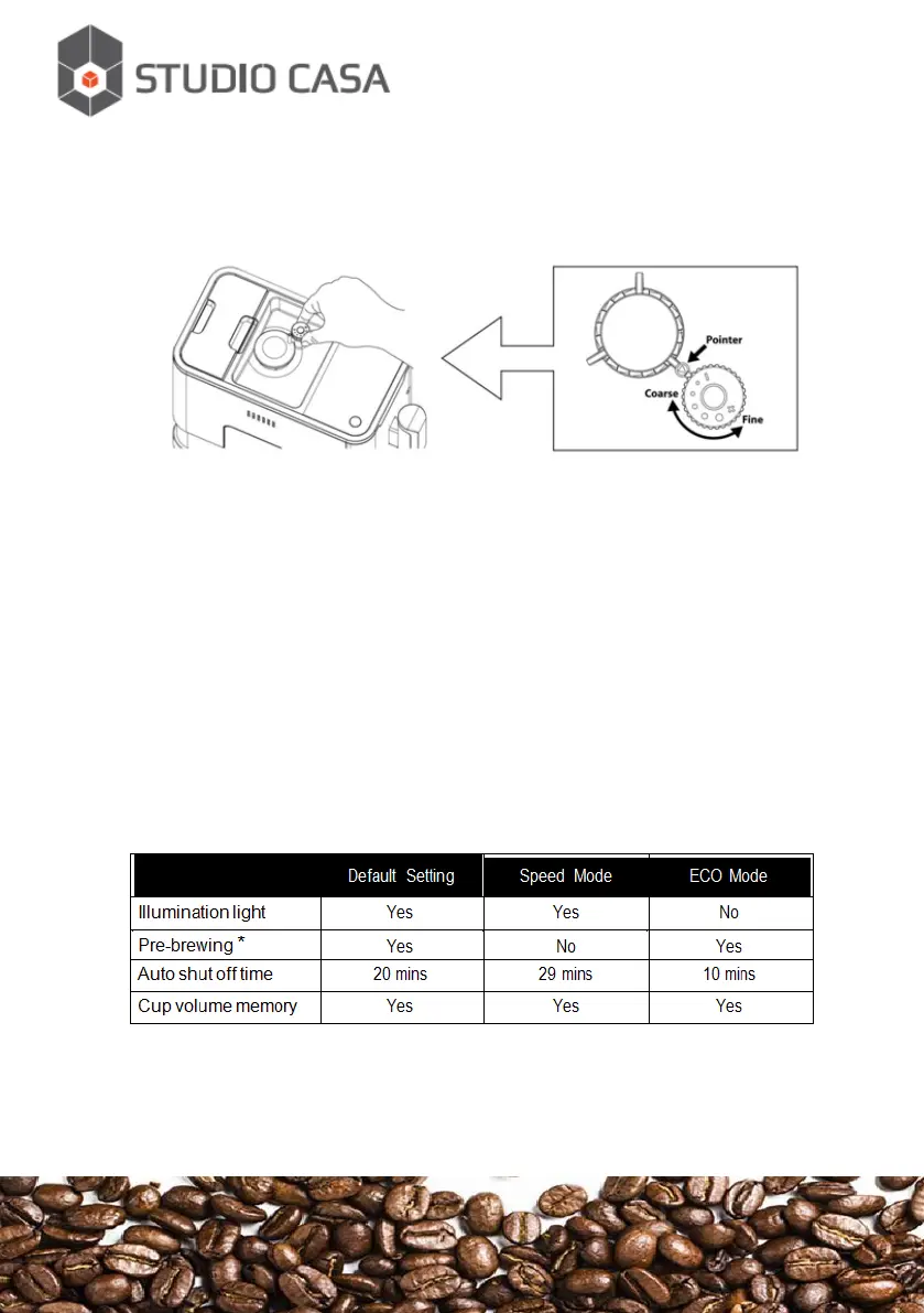2. The dots on adjuster knob indicate the grinding fineness.