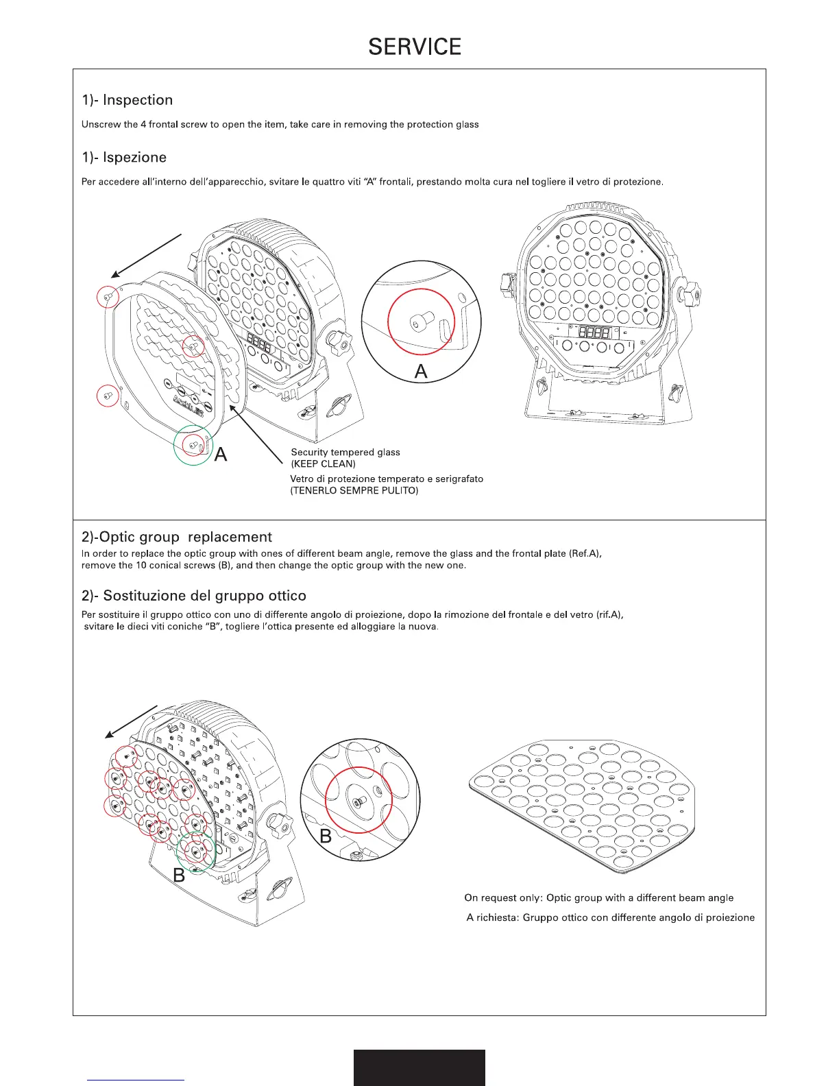 STUDIO DUE ArchiLED 150 - Service and Maintenance; Inspection and Cleaning; Optic Group Replacement