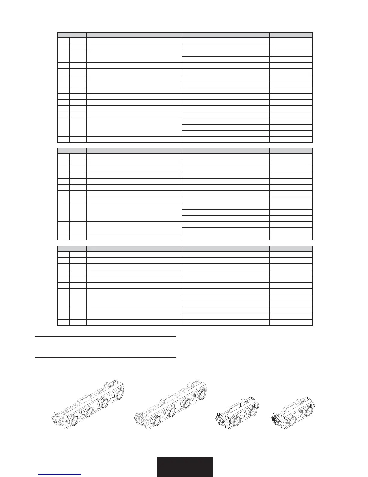 It utilize: 14 DMX channels, 16 bit (mod 3), 11 DMX channels, 8 bit (mod 2) e 9 DMX channels, 8 bit (mod 1).