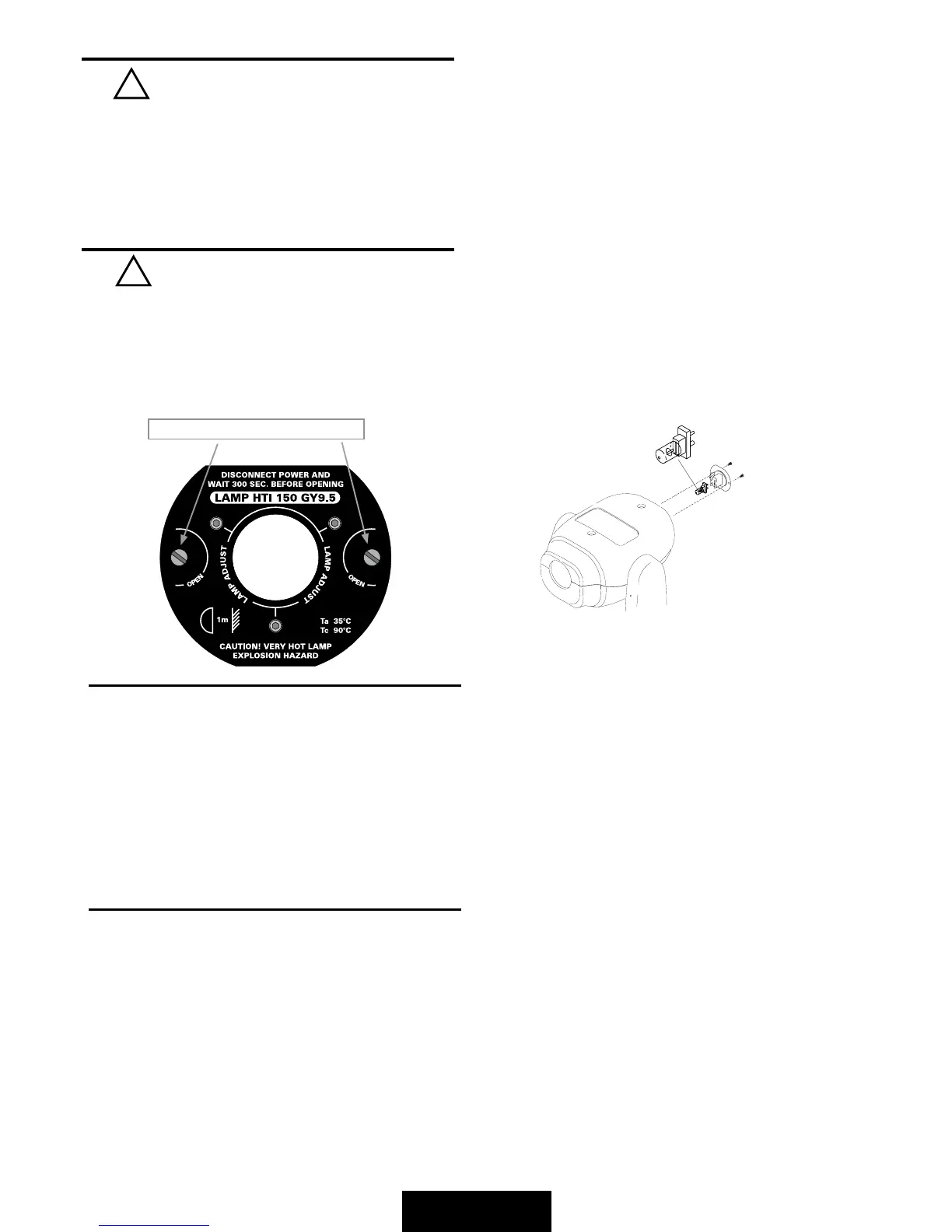 In case of replacement of the lamp or maintenance, do not open